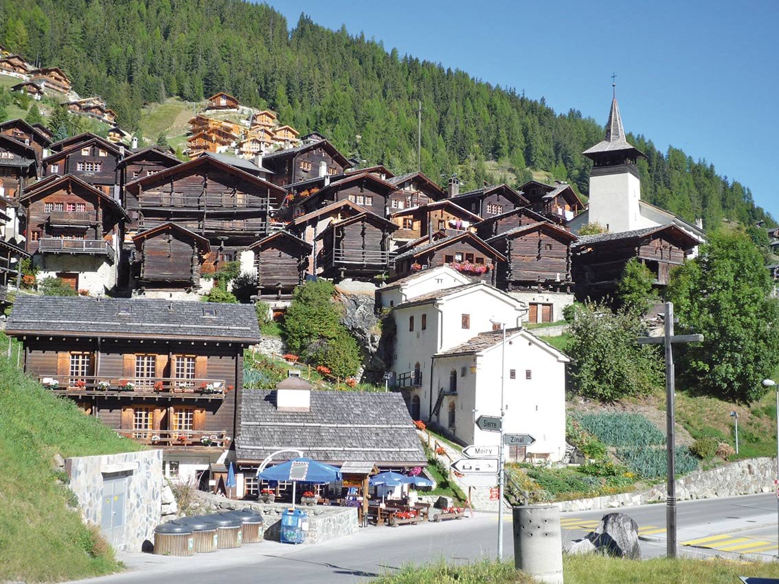 Der Steig ist französisch weit gesichert. Sehenswert ist bei der Hin- oder Rückfahrt auf jeden Fall der Ort Grimentz mit den berühmten, von der Sonne schwarz gebrannten Getreidespeichern und den feurig roten Geranien.