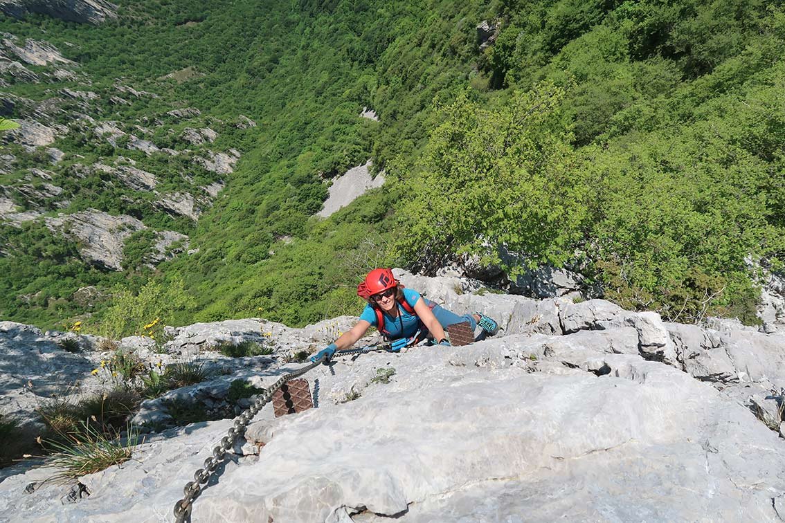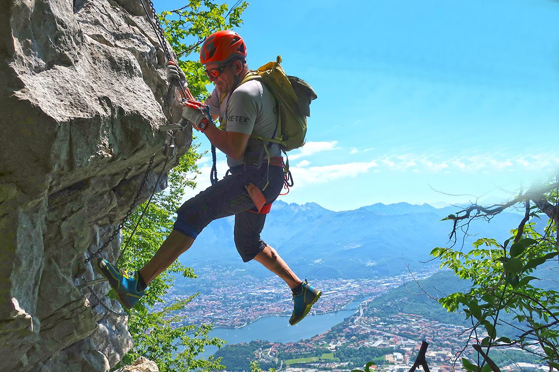 Tolle, kräftige und ausdauernde Ferrata Tour oberhalb von Valmadrera am Como See. Die Route hat einige knackige Steilpassagen und ist über weite Strecken für die Unterarme recht fordernd. Am Ende steht man auf dem Corno di Canzo Orientale und hat einen tollen Tiefblick auf das Südende des Como Sees und das Häusermeer von Lecco. Ein schöner Ferrata-Tourentag an der Westseit des Lago di Como, bei dem man oben noch die kurze Ferrata del 25° Venticinquennale oder die lange Überschreitung des Monte Moregallo Kammes anhängen kann.