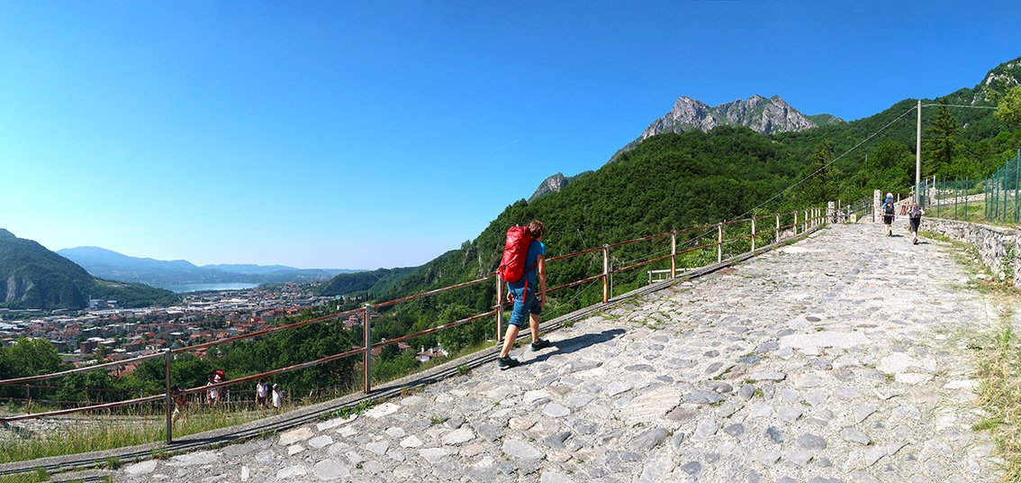An der Westseite des Lago di Como nach Valmadrera und dort hinauf in den Ortsteil Belvedere - je nach Möglichkeit parken.