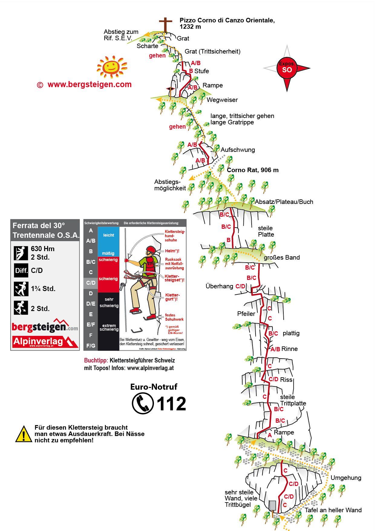 Bei Nässe ist die Ferrata und vor allem der Weg zwischen Corno Rat und Corno di Canzo Orientale nicht zu empfehlen!