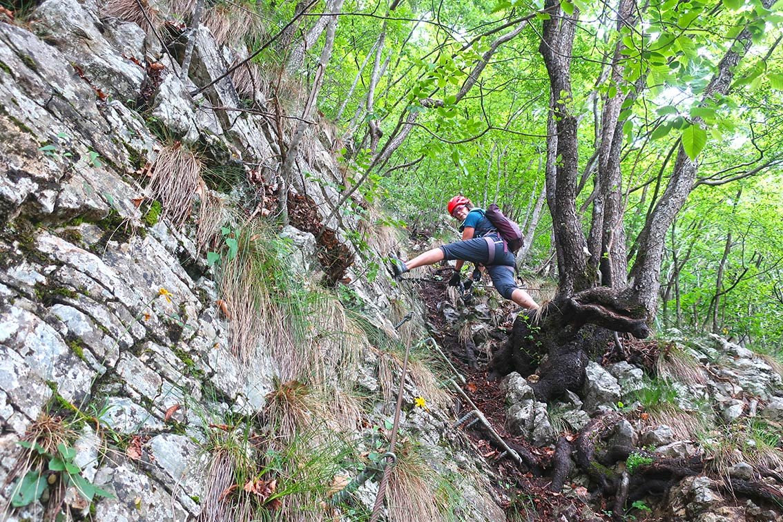 Wem die Ferrata Che Guevara Klettersteig zu heikel, zu heiß oder zu lang ist, für den ist Ferrata Rampin eine gute, einfachere Alternative, um auf den Monte Casale zu steigen!