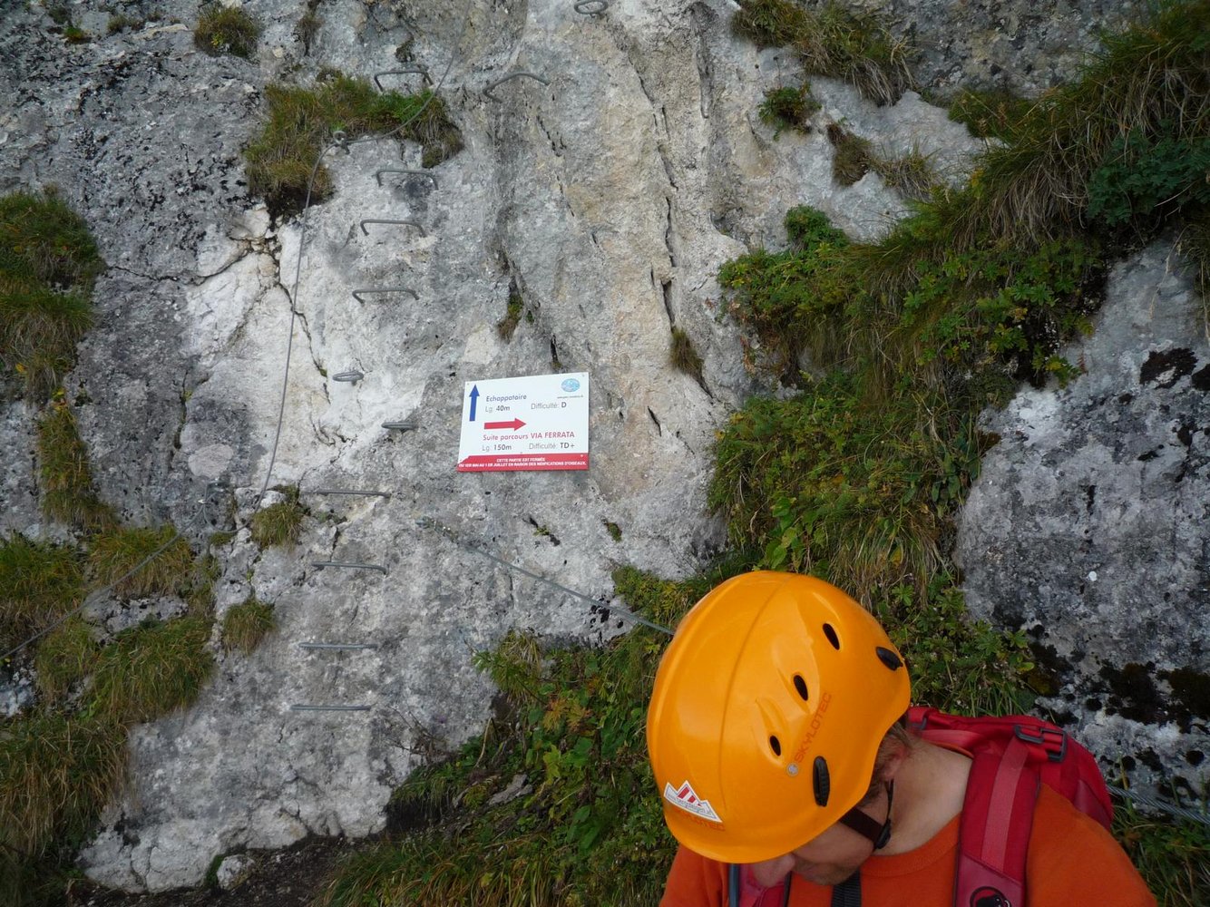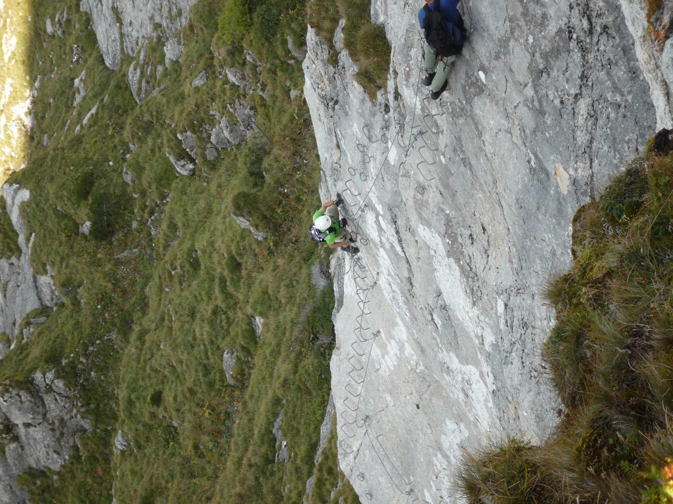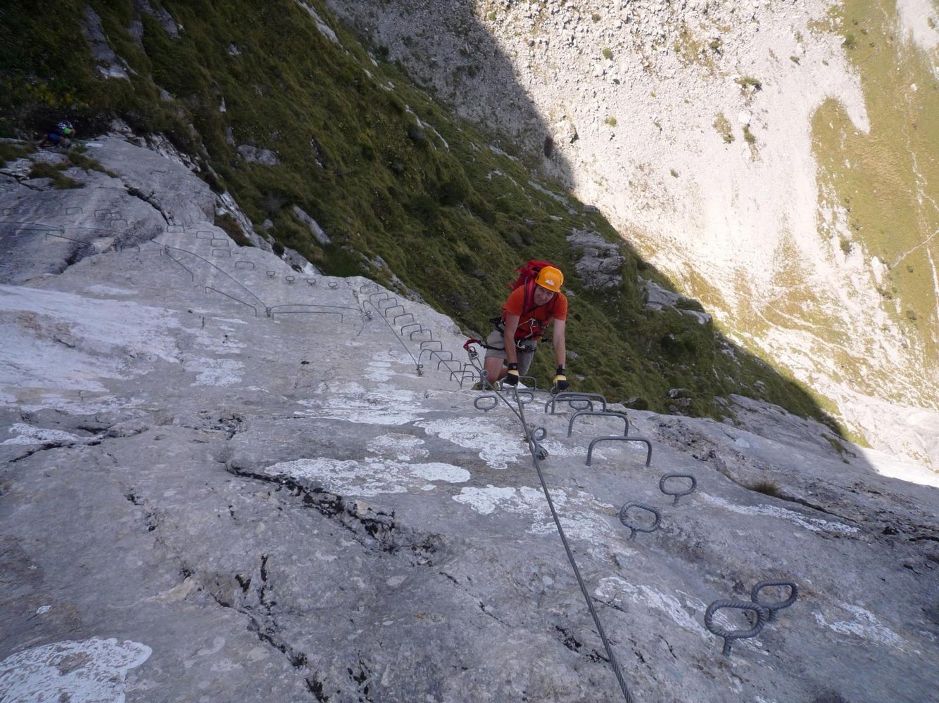 Die D/E Sektion am Ende des Steiges kann über einen gut versicherten Notausstieg umgangen werden. Schwierigkeit dann D-