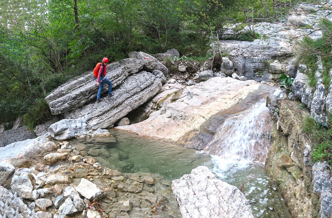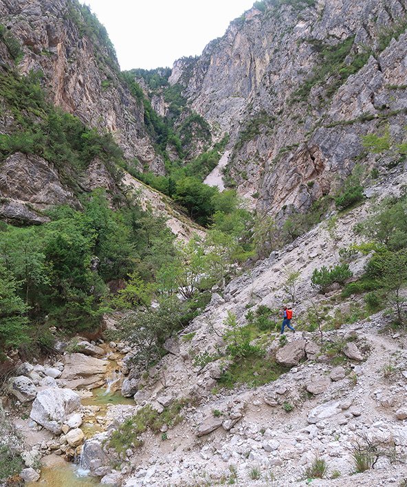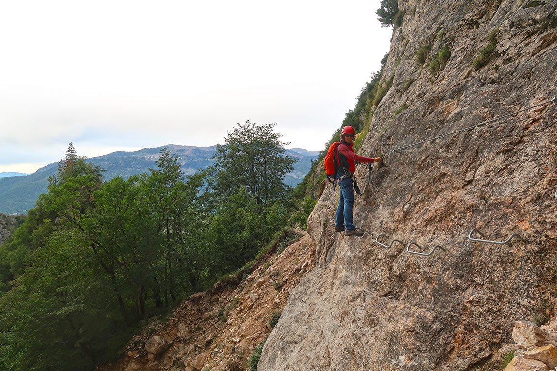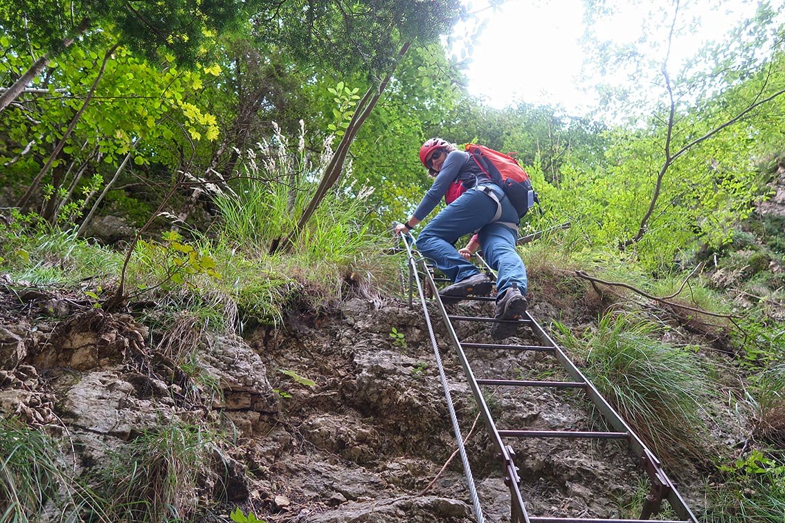 Die Ferrata ist bei Nässe heikel und bei Gewittergefahr extrem gefährlich (der Bach füllt sich mit Wasser und Steine werden von den Hängen gespült)!