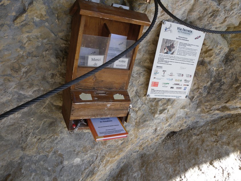 Achtung: Laut Anordnung des zuständigen kantonalen Departements ist die Via ferrata immer vom 1. Januar bis 31. Juli geschlossen. Das Brüten und der Nestbau der Turmfalken, Wanderfalken und Mauerläufer (Tichodroma muraria) soll nicht gestört werden. Zusätzlich werden die Drahtseile beim Einstieg und am Ende der Via ferrata während dieser Zeit abgebaut.