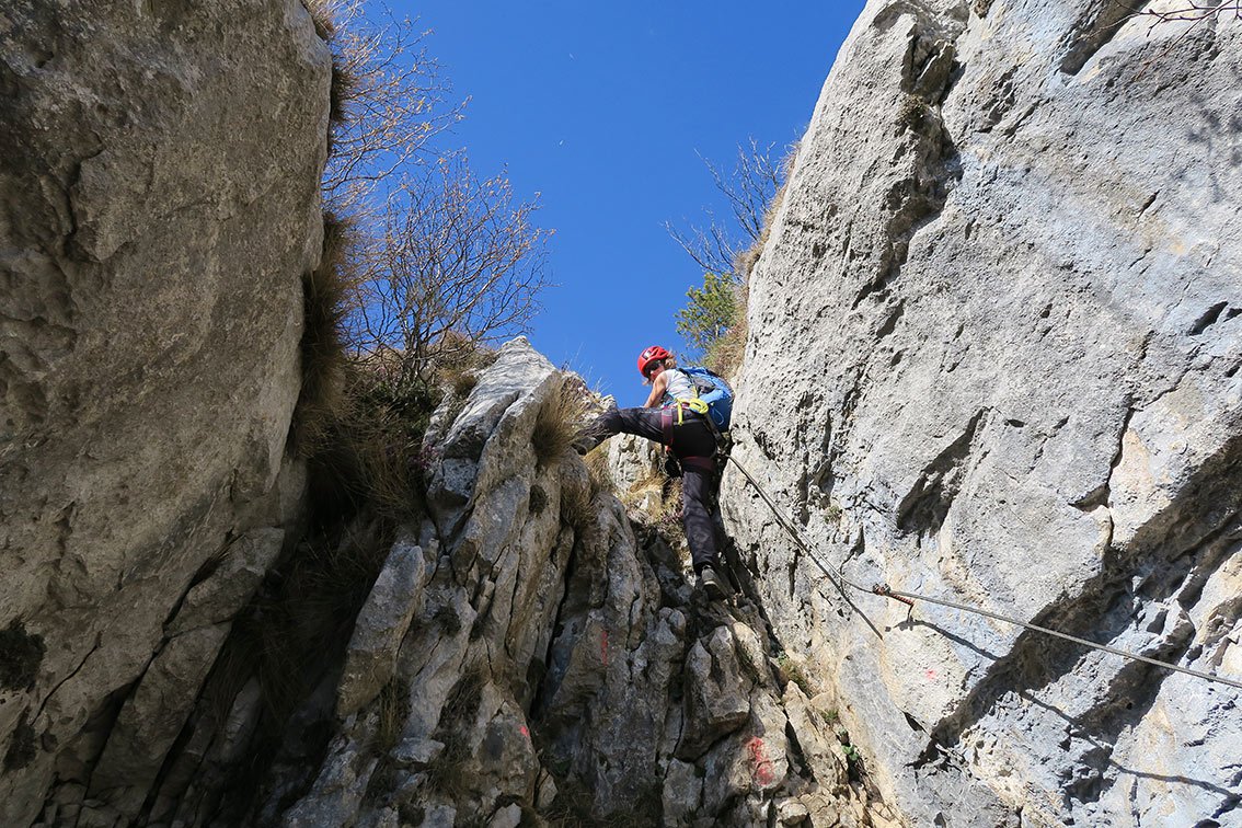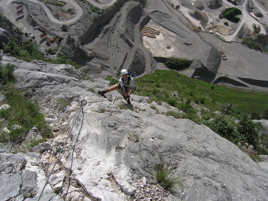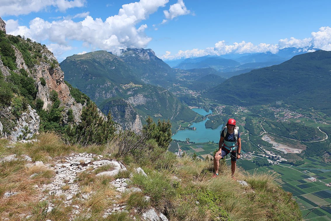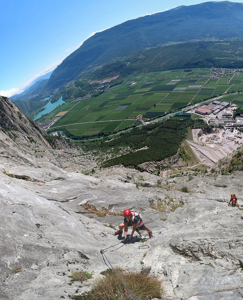 Anmerkung: Mit gesamt 1400 Hm der längste Klettersteig beim nördlichen Gardasee, vor allem im Sommer sollte man die Tour nicht unterschätzen. Bei Nässe ist die Ferrata wegen der oberen, erdigen Gehpassagen nicht zu empfehlen. Es liegt auf den Bändern viel Schutt - Steinschlag ist also in Thema. In den Sommermonaten Juli und August ist auf kühles Wetter zu achten.