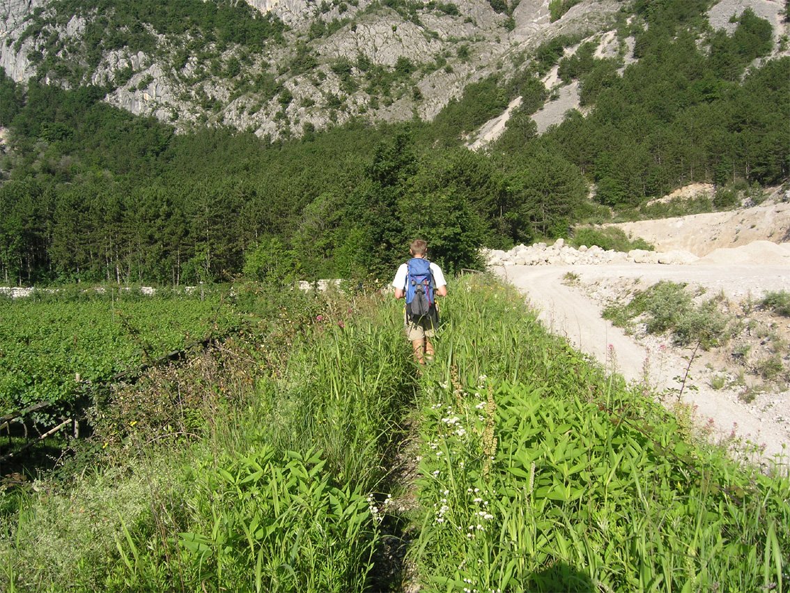 Alternativ kann man beim Rifugio rechts dem Weg 427 Richtung Sarche/Pietramurata folgen und auf diesem nach Sarche absteigen - unten muss man aber wieder nach Pietramurata zurückgehen - vermutlich mindestens 1,5 Stunden länger als der Abstieg entlang der Ferrata Rampin.