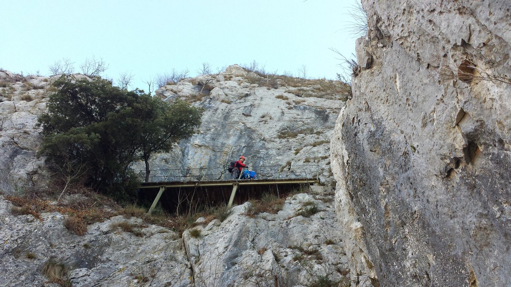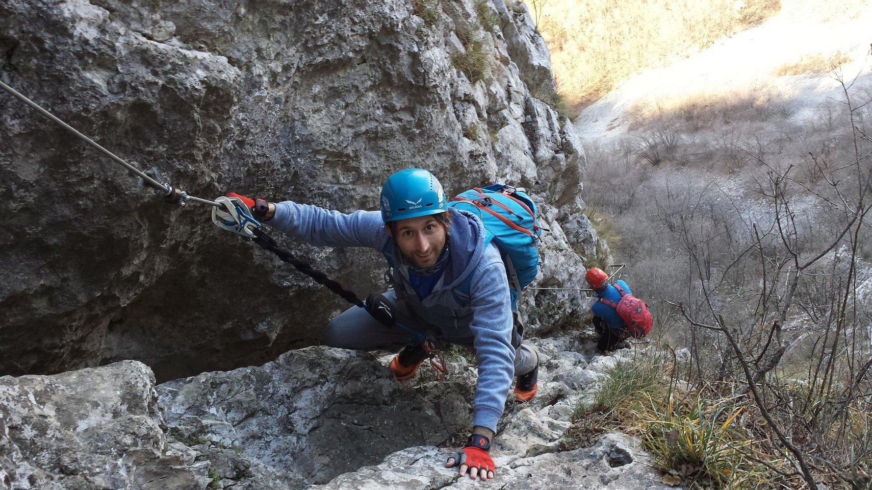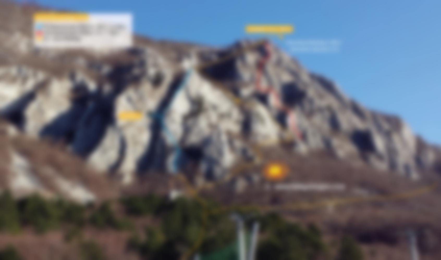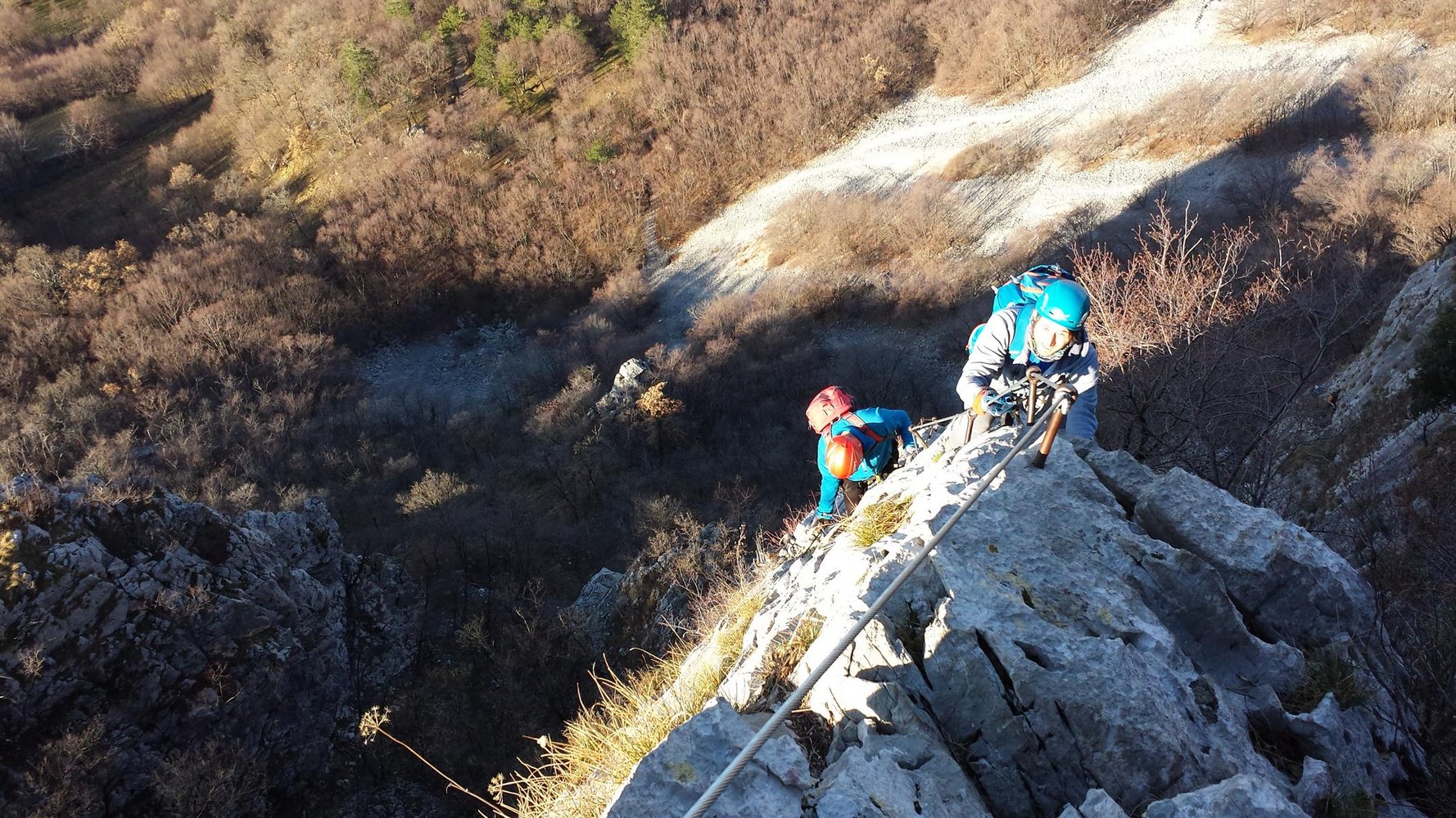 Der erste Klettersteig an der Gradiška Tura führt im linken Wandteil zu einer Plattform, von der aus man einen exzellenten Blick ins Vipava Tal hat, und geht dann über eine schöne Pfeilerkante zum Steigende in Wandmitte. Hier kann man entweder über den Normalweg in rd. 35 Min. zum Gipfel der Gradiška Tura aufsteigen, oder man steigt über den Normalweg kurz bis zum Einstieg der etwas schwierigeren Otmarjeva pot Ferrata ab und erklimmt über diesen Klettersteig den Gipfel.