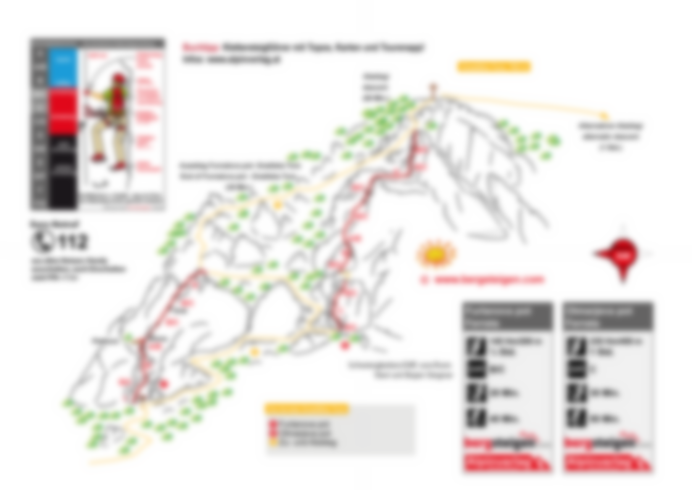 Klettersteigausrüstung und Helm. Im Sommer genügend Flüssigkeit.