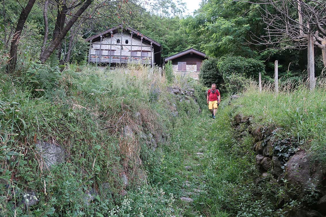 Vom Steigende bei der Bank zuerst länger aufwärts, dann nach links auf einem Pfad hinunter zum Ort und auf der Via Cappella Grand bis zur Kirche. Dahinter zum Sportplatz und weiter zum Parkplatz.