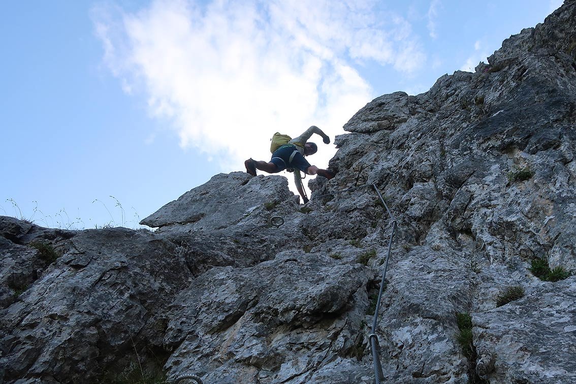 Eine ideale Hochsommertour oder für trockene, warme Herbsttage. Man klettert durch eine Nordwand, bei schlechten Wetterverhältnissen kann das schnell mal zum Eiger-Nordwand-Drama werden.
