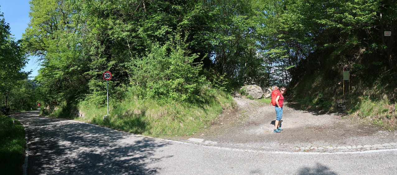Von Lecco nach Ballabio und von dort auf einer kleinen Straße (SP63) in Richtung Morterone. Nach einigen Kehren und einem Tunnel kommt man an eine Geländekante – flacher Straßenabschnitt; Buschwerk; ca. auf 900 m – dort nach einer markanten Kehre bei div. Möglichkeiten an der Straße parken. Öffis: Mit dem Bus nach Ballabio und zu Fuß zum Einstieg.