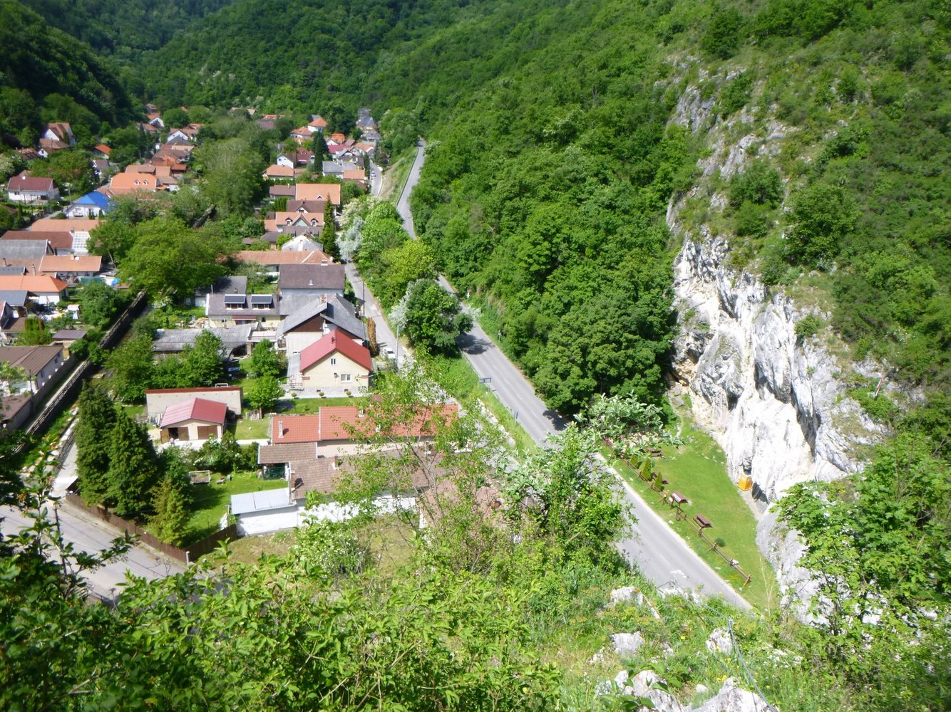 Vom Parkplatz läuft man die Straße zurück. Große Wand: Nach ca. 40, noch vor dem Kiosk biegt man rechts ab und überquert über eine Fußgänger-Holzbrücke den Bach Szinva. Auf anderer Bachseite läuft man zwischen beginnendem Wald rechts und naher Felswand geradeaus durch ein Holzportal zu 2 Sitzbänken auf einer Grasbucht. Dort kann man sich anseilen (5 min.). Kleine Wand: Auf Straße zurück bis zur Gabelung und links durch das Portal zur Kleinen Wand.