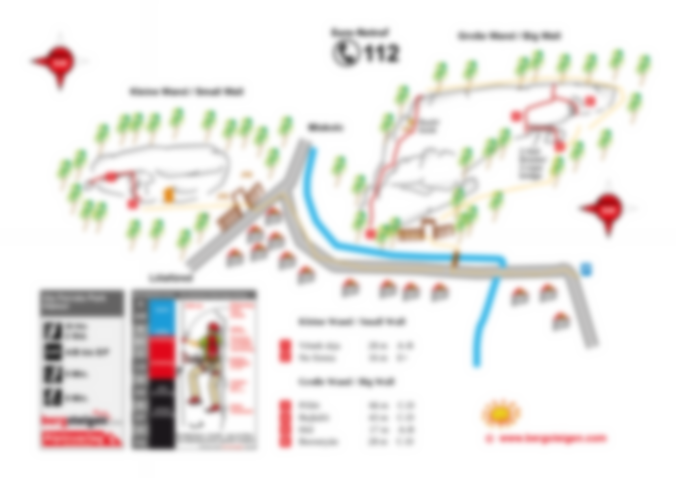 Zwei kleine Wände unmittelbar neben der Straße mit Kletterrouten und einigen Klettersteigen. Die Klettersteige sind bis zu 66 Meter langn und liegen im Schwierigkeitsbereicht A/B bis E/F.