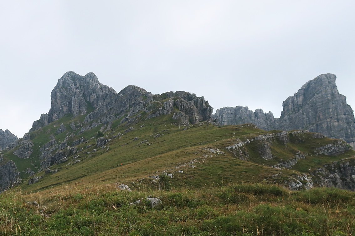 Vom Gipfel des Monte Resegone (1875) auf Betonstufen hinunter zum nahen Rifugio Luigi Azzoni (1860 m) und dann auf dem Weg Nummer 901 zurück zum Aufstiegsweg und auf diesem weiter absteigen.