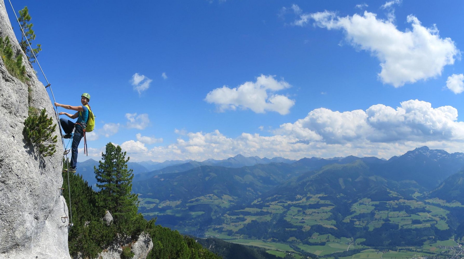 Der zweitjüngste Neuzugang des Klettersteigparks am Stoderzinken ist mit rund 300 Metern der längste Klettersteig am Stoderzinken und bietet sehr abwechslungsreiche und landschaftlich interessante Kletterei im mittleren Schwierigkeitsgrad. Mit dem Franz ist der Stoder ein lohnendes, eigenstendiges Klettersteig-Ziel geworden, man kann hier nun ohne viel Zustieg einen guten Halbtag verbringen und danach geht sich noch ein Run mit der Zipline aus.