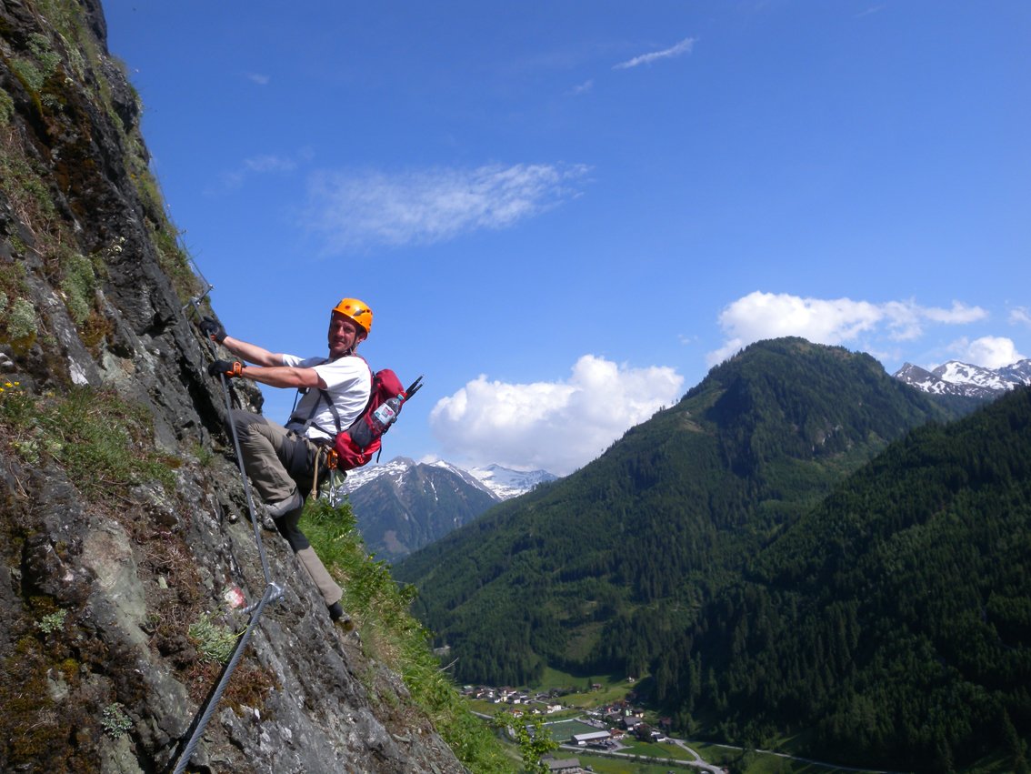 Der Franzl Klettersteig ist eine gewaltige Querungstour in der Schwarzen Wand oberhalb von Hüttschlag. Der Anstieg wird immer schwerer und findet den finalen Höhepunkt an einer weißen, leicht überhängenden Steilwand im oberen Teil der Route. Die Tour wurde als alternativer Klettersteig zum Kupfergeist-Klettersteig konzipiert und ist mit der rechten Umgehungsvariante auch etwas leichter. Fast noch besser als beim Kupfergeist-Klettersteig ist der tolle Ausblick in die Hohen Tauern und die gehörige Portion Luft unter dem Hintern - Sportklettersteigfans mit Ausdauer werden ihre Freude haben.