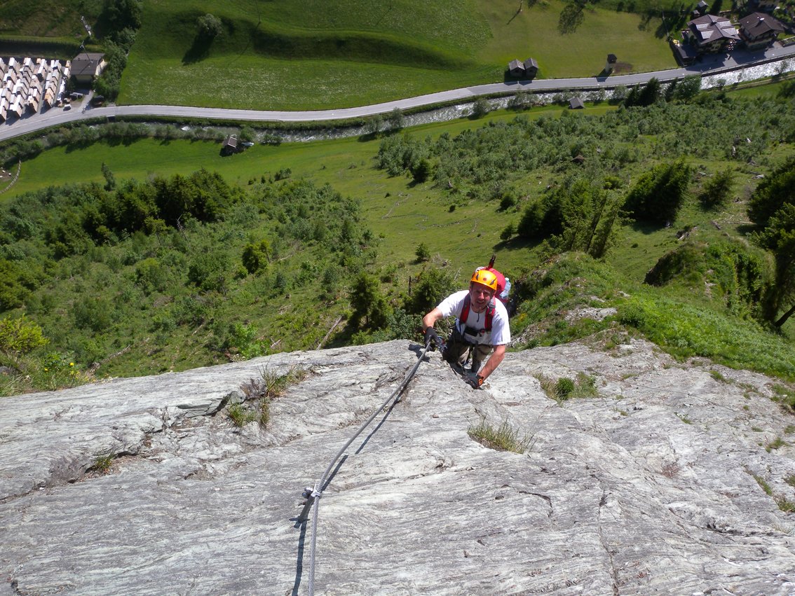 Gut versicherte Steiganlage, tlw. aber etwas weite Abstände.