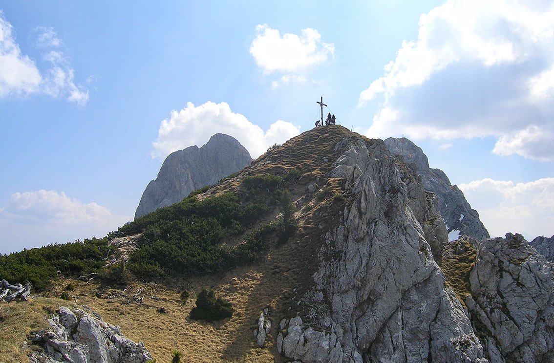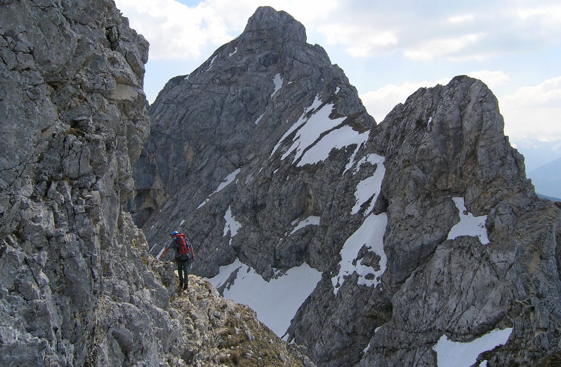 Vom Gipfel über den Normalweg (kurze versicherte Passagen A) hinunter ins Kar und weiter zum Gimpelhaus. Vom Gimpelhaus steil zurück nach Nesselwängle und kurz vor dem Ort nach rechts zum Parkplatz.