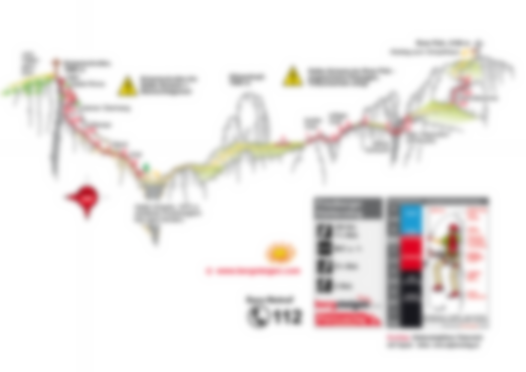 Kletterlänge / Gesamthöhe / Kletterzeit / Gesamtzeit 250 Hm  /  1100 Hm