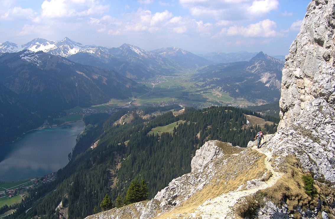 Die sehr steinschlaggefährdete Steilpassage am Schartschrofen sollte nicht unterschätzt werden! Wegen der Südlage kann der Klettersteig meist schon früh im Jahr begangen werden - auch in umgekehrter Richtung vom Gimpelhaus aus. Der Zustieg über den Adlerhorst ist eine lange Rundtour, bei der man ständig den Haldensee im Blickwinkel hat.