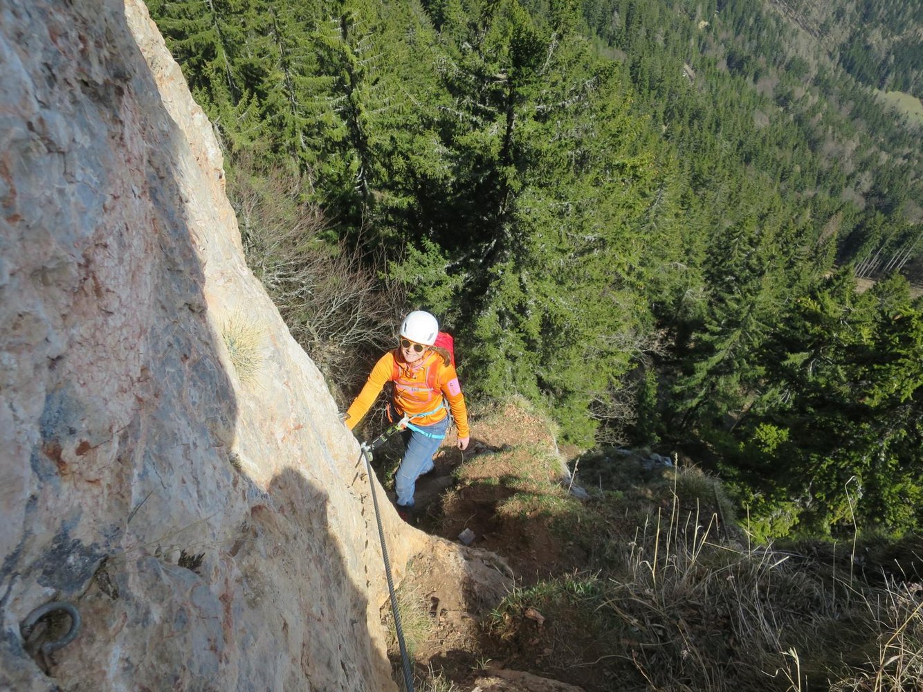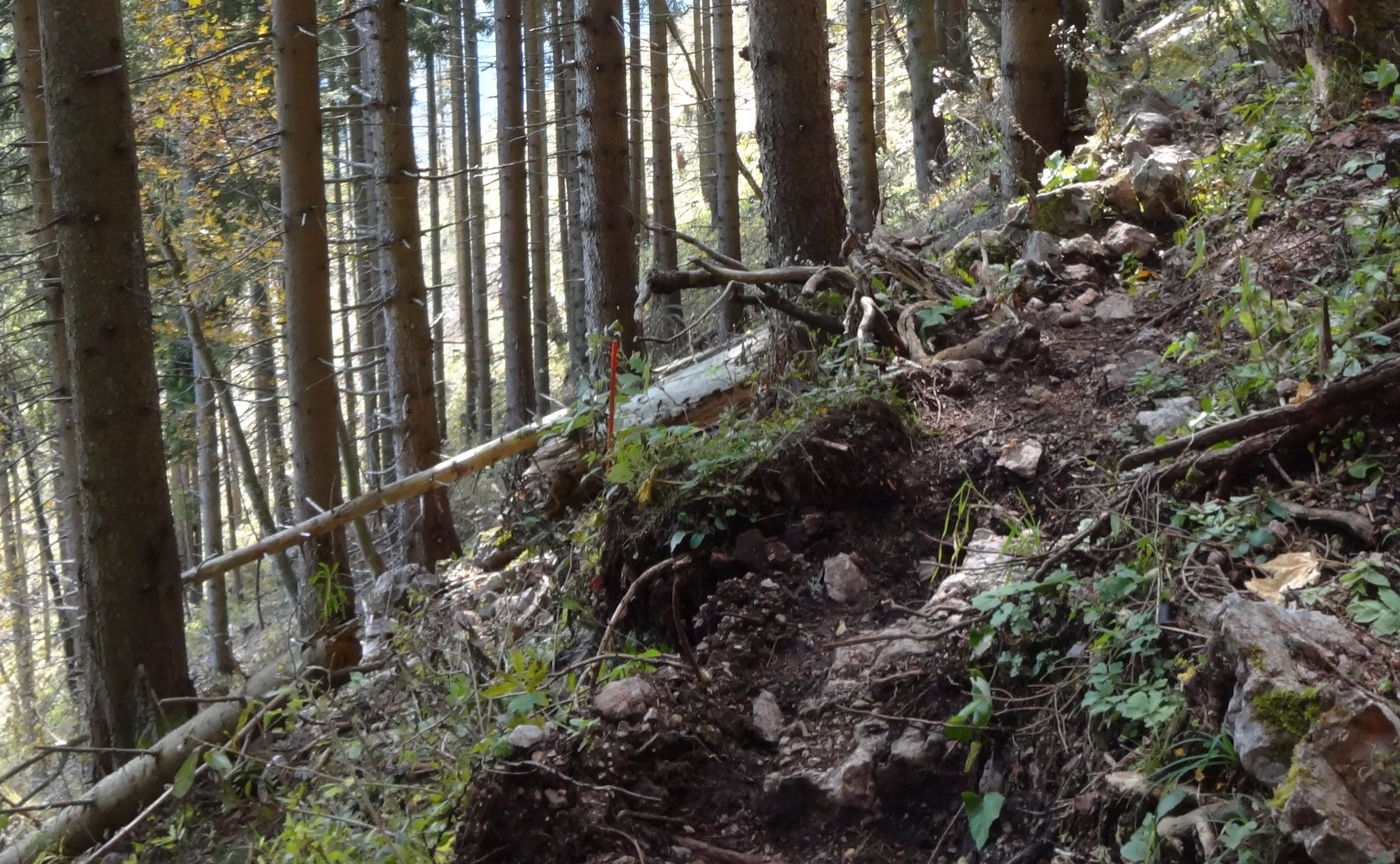 Am Gipfel links halten und über den markierten Wanderweg zum Bucheben-Sattel absteigen und von dort über die Forststraße zurück zum Rote Wand Parkplatz