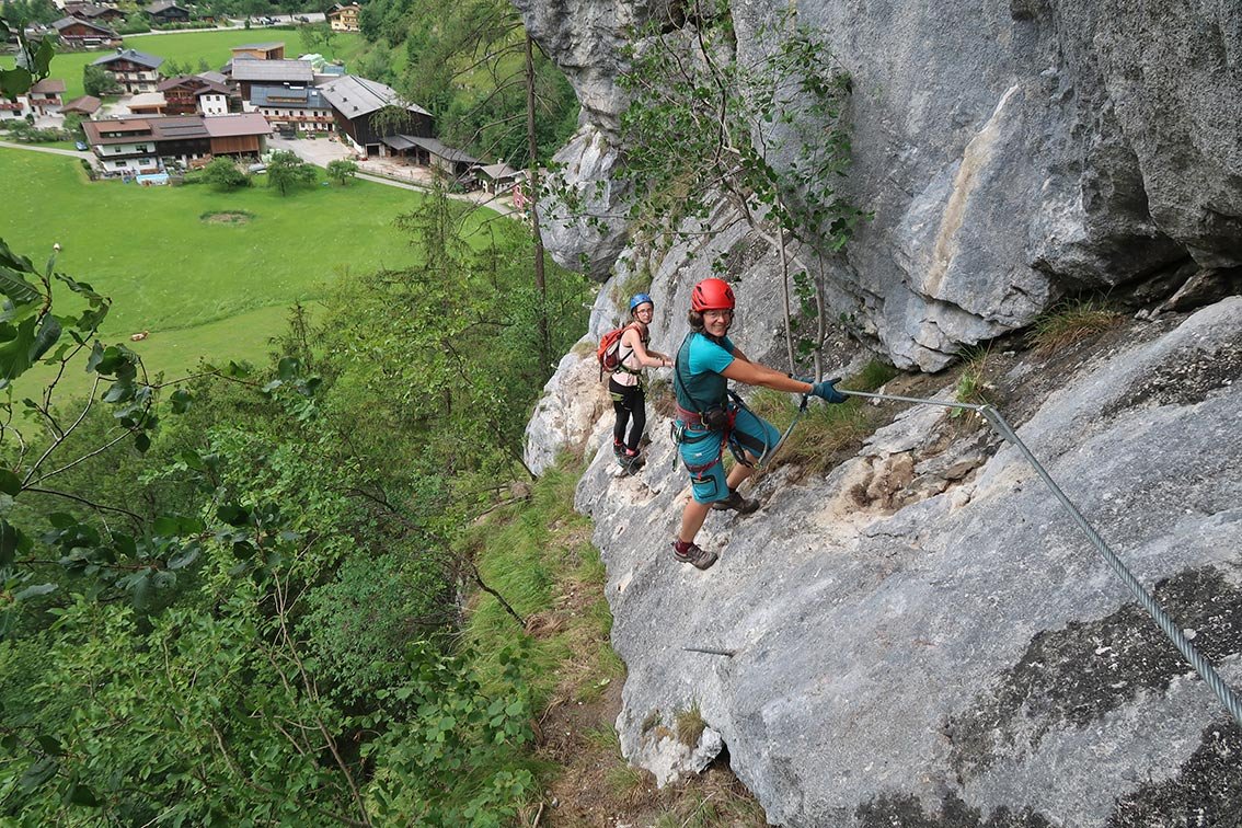 Eine der kurzen Steilpassagen - Gams Kitz Klettersteig Weißbach bei Lofer.