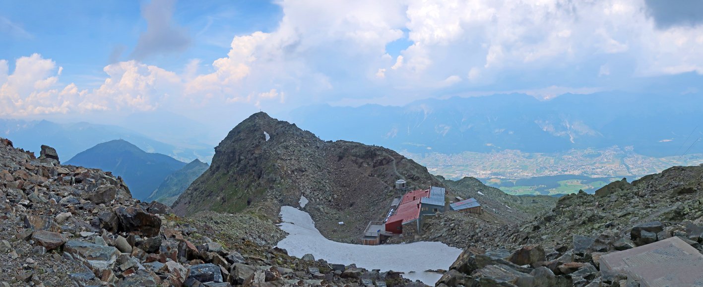 Vom Ausstieg über Blockgelände links zur Glungezerhütte. Alternativ kann noch die Sonnenspitze „mitgenommen“ werden (15 Min. zusätzlich). Von der Hütte auf dem markierten Weg zum Tulfeinjöchl, dann an der Schäferhütte vorbei zurück zur Tulfeinalm bzw. Bergstation.