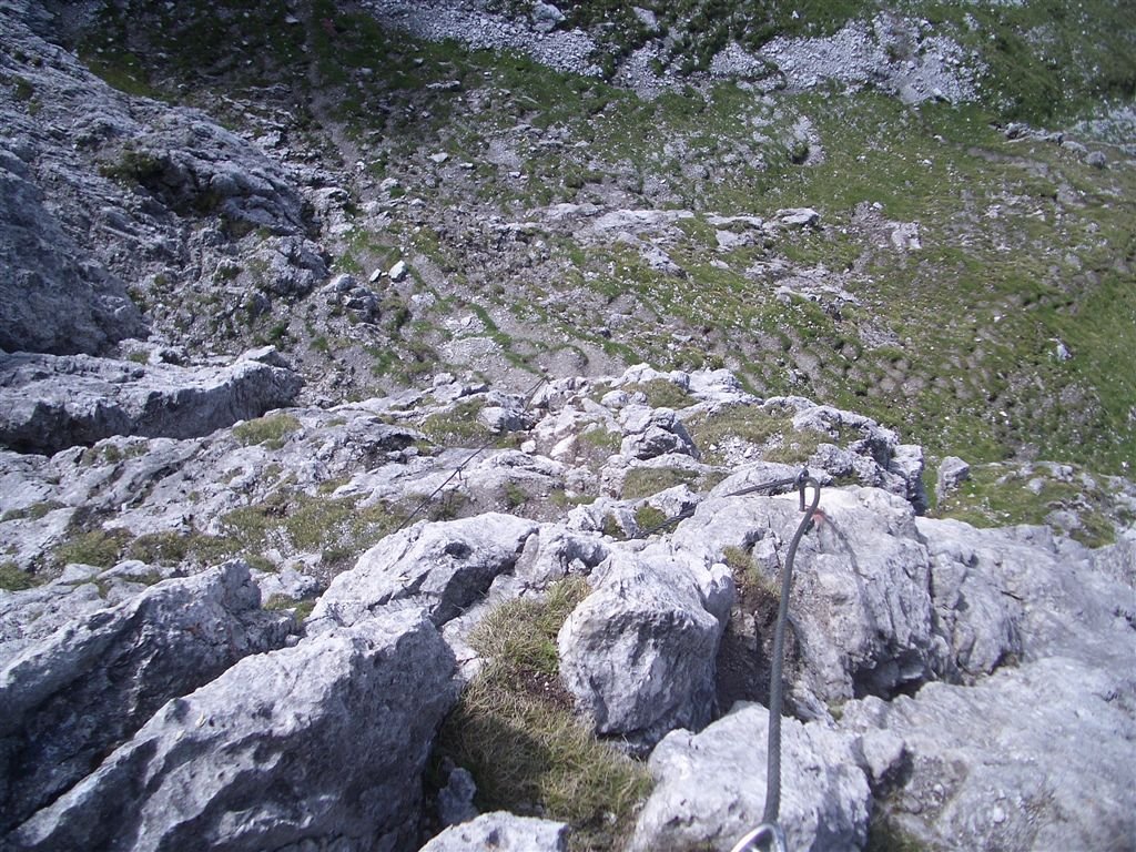 Beim Ausstieg steigt man (von unten gesehen) rechts ab; markiert und teilweise versichert. Man erreicht wieder die Taghaubenscharte und steigt wie beim Aufstieg zur Erichhütte ab.