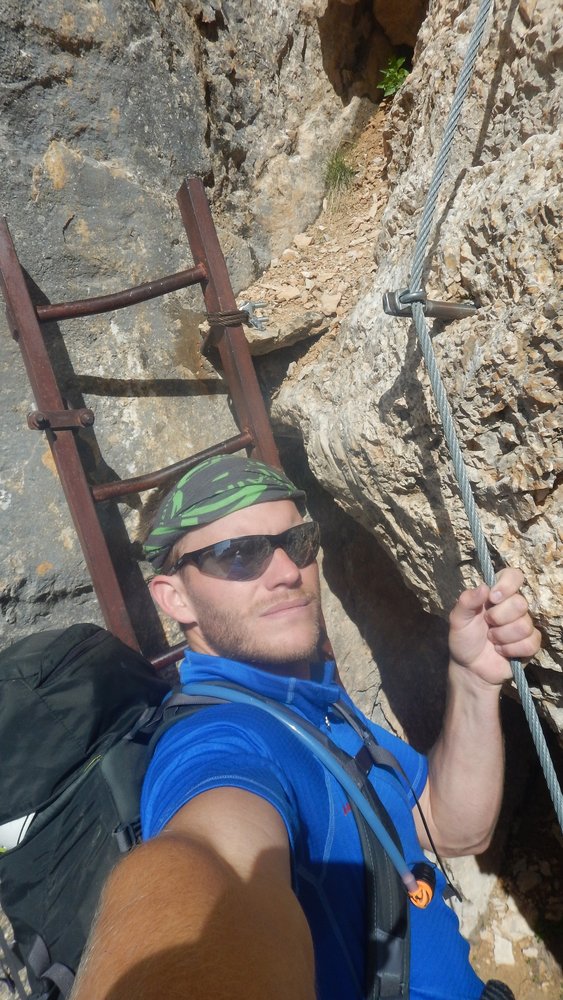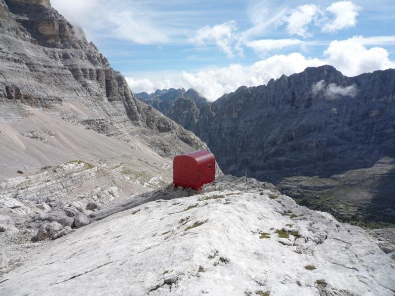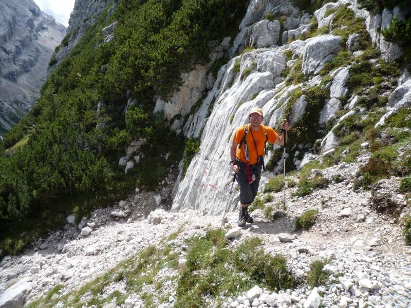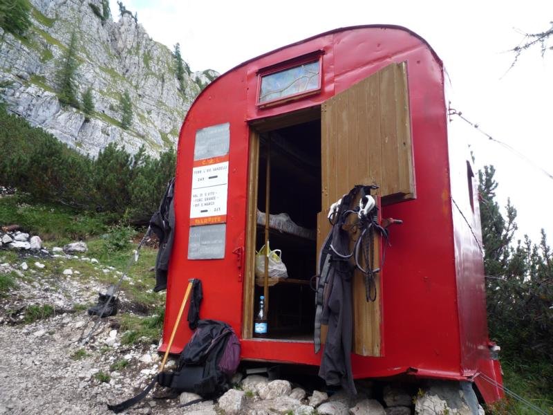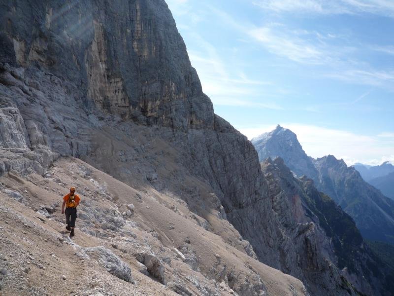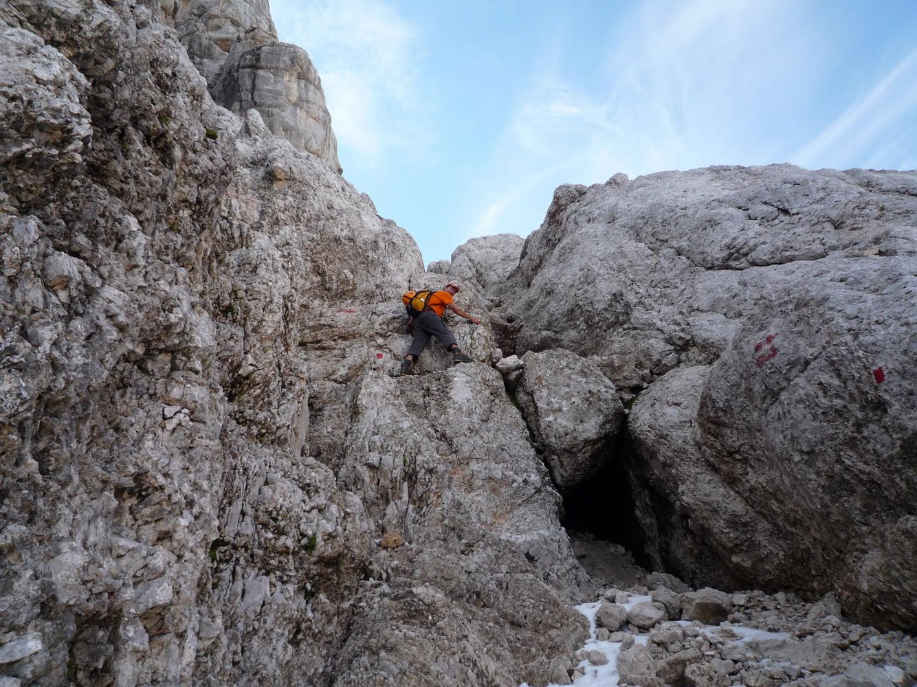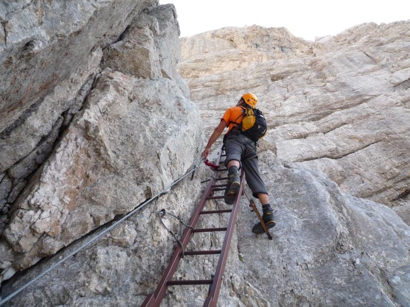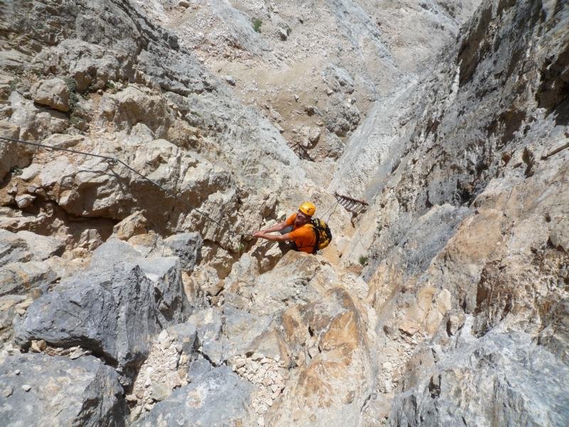 Schwächere Kletterer sollten die Ferrata F. Berti vom Rif. A. Vandelli Richtung Biv. Slataper machen, damit sie die Kletterstellen im Aufstieg machen können!
