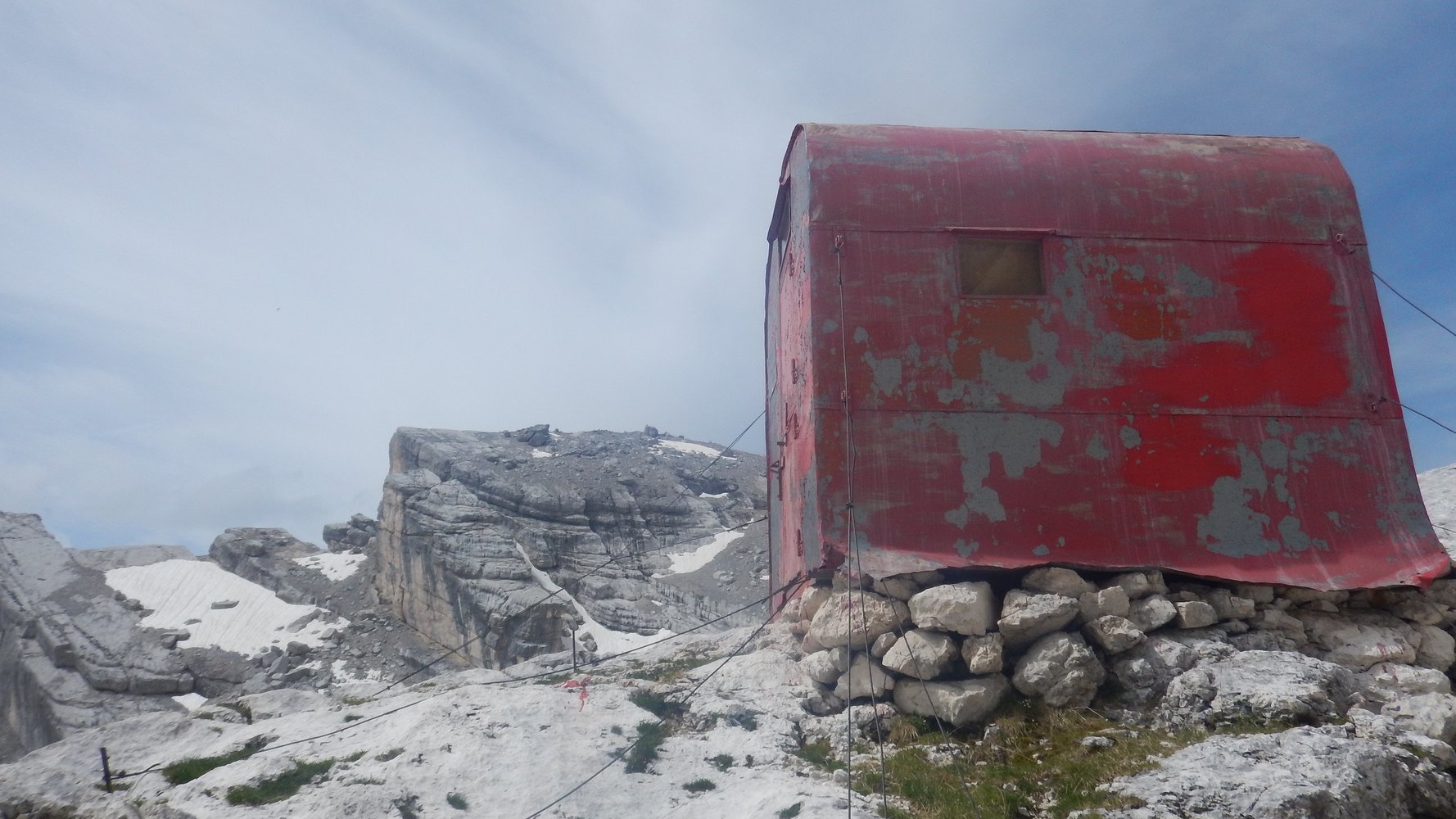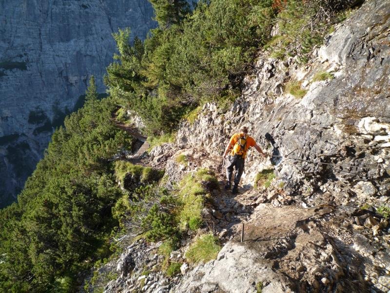 Ferrata F. Berti erfordert Trittsicherheit und Kletterkönnen bis zum unteren 2. Schwierigkeitsgrad! Im Bereich Biv. Slataper ist bei Schlechtwetter die Orientierung schwierig.