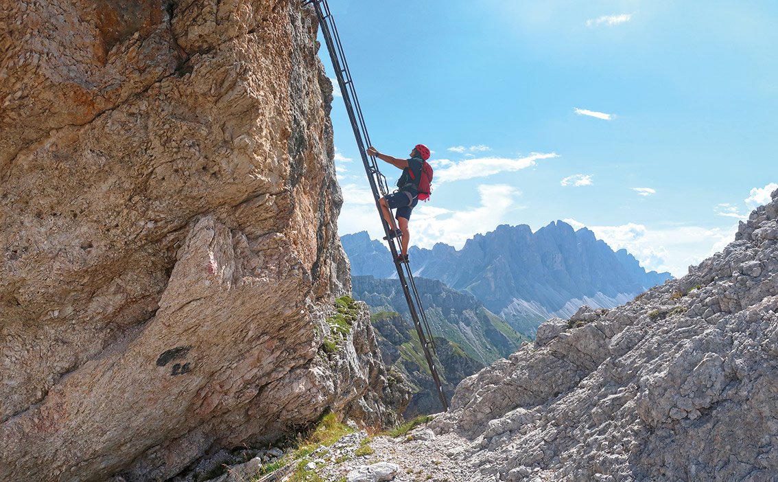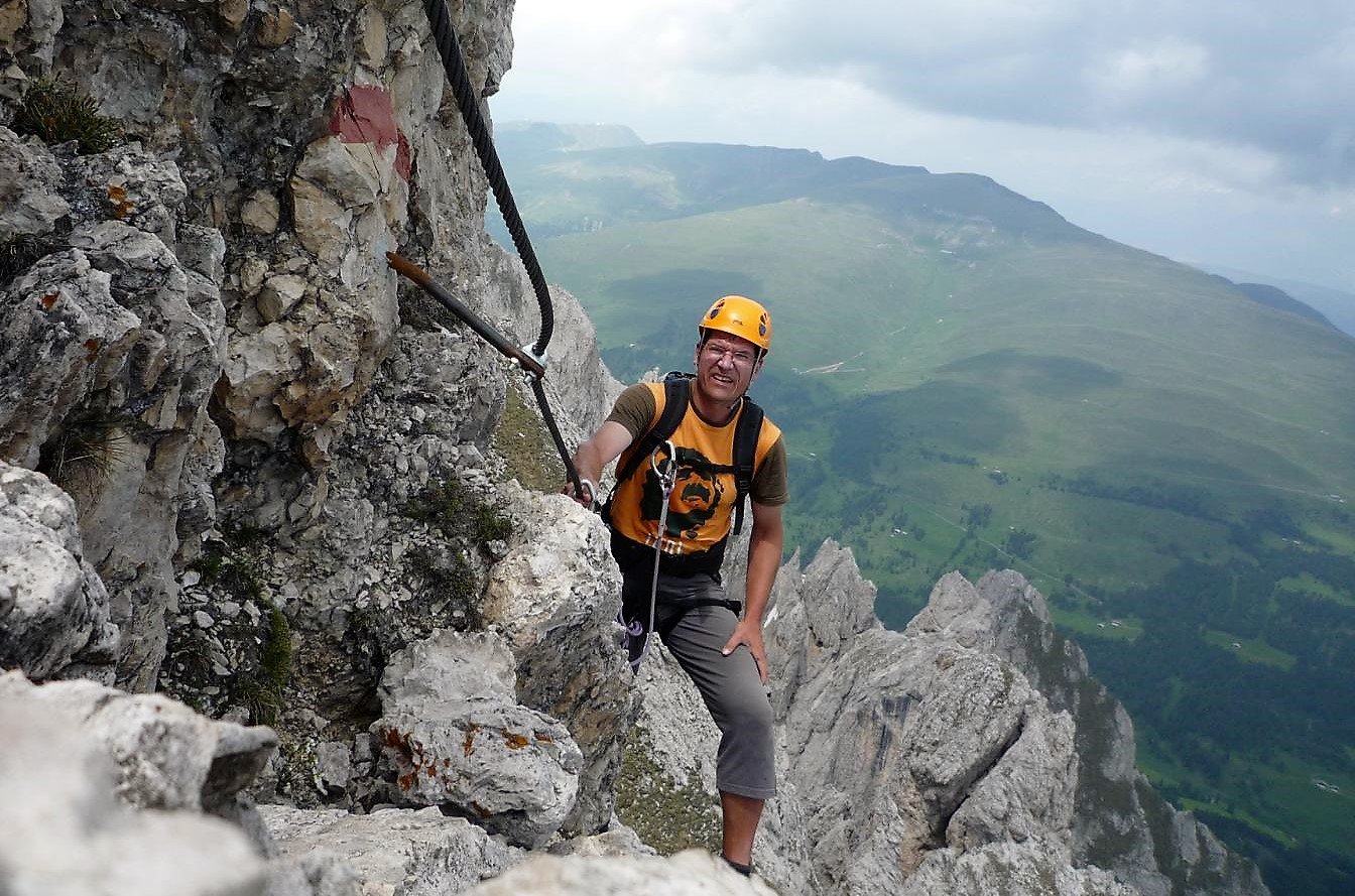 Der nach dem am Nanga Parbat verstorbenen Bruder des aus St. Magdalena in Villnöss stammenden Südtiroler 8000er Pioniers Reinhold Messner benannte Steig folgt dem Grat des Aferer Geislers zur Schlüterhütte und gewährt im voralpinen Ambiente einen schönen Blick auf die Nordwände des Sass Rigais. Der Steig ist nur an wenigen Stellen versichert (mehr Wanderung), aber markiert bzw. beschildert. Für Klettersteigfreaks bietet die kurze „Variante Difficile“ das entsprechende Feeling.