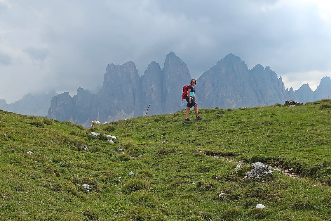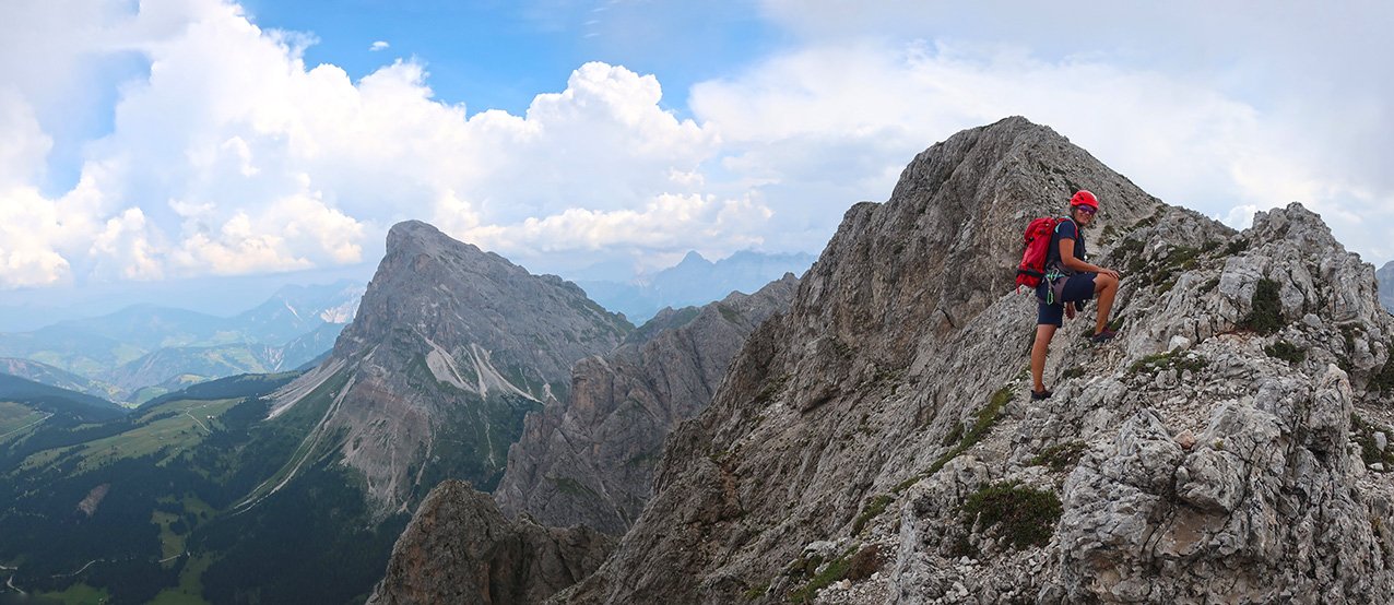 Die beschriebene Runde vom Russiskreuz folgt immer dem Alta Via Günther-Messner (G.M.) Weg. Stabiles Wetter nötig! Mann kann den Günther-Messner-Steig auch von der Zanser Alm (1645 m) machen. Zanser Alm - Tullen - G. M. Steig - Peitlerscharte - Schlüterhütte - Zanser Alm (ca. 6 Std.). Von der Peitlerscharte, 2357 m erreicht man den Gipfel des Peitlerkofels, 2875 m (kurz versichert, A; plus 2¼ Std. rauf und runter).