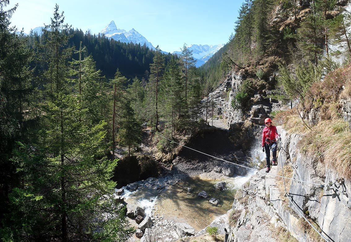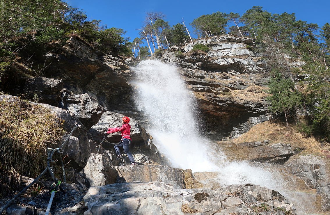 Der Häselgehr Klettersteig ist eine unscheinbare Ferrata direkt bei einem Wasserfall. Das Highlight gleich vorweg - man geht seilgesichert direkt hinter den tosenden Fluten hindurch! Ansonsten hat der Klettersteig eher Übungsklettersteig-Charakter, für Einsteiger, welche erste Schritte am Stahlseil machen und Kinder (betreut durch Eltern) zu empfehlen. Auf der Durchreise ist die Ferrata als Stopp, um sich die Füße zu vertreten, auch sehr interessant - in 30 Min. hat man alles inkl. Zu- und Abstieg und Klettersteig im Kasten.