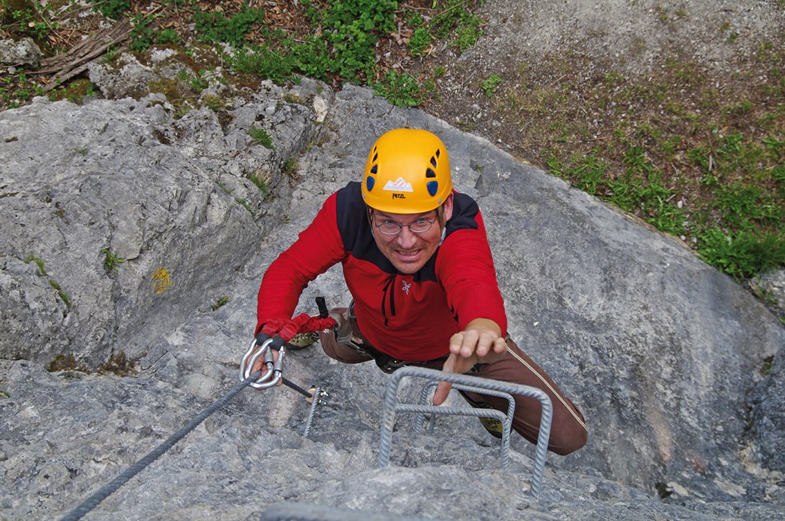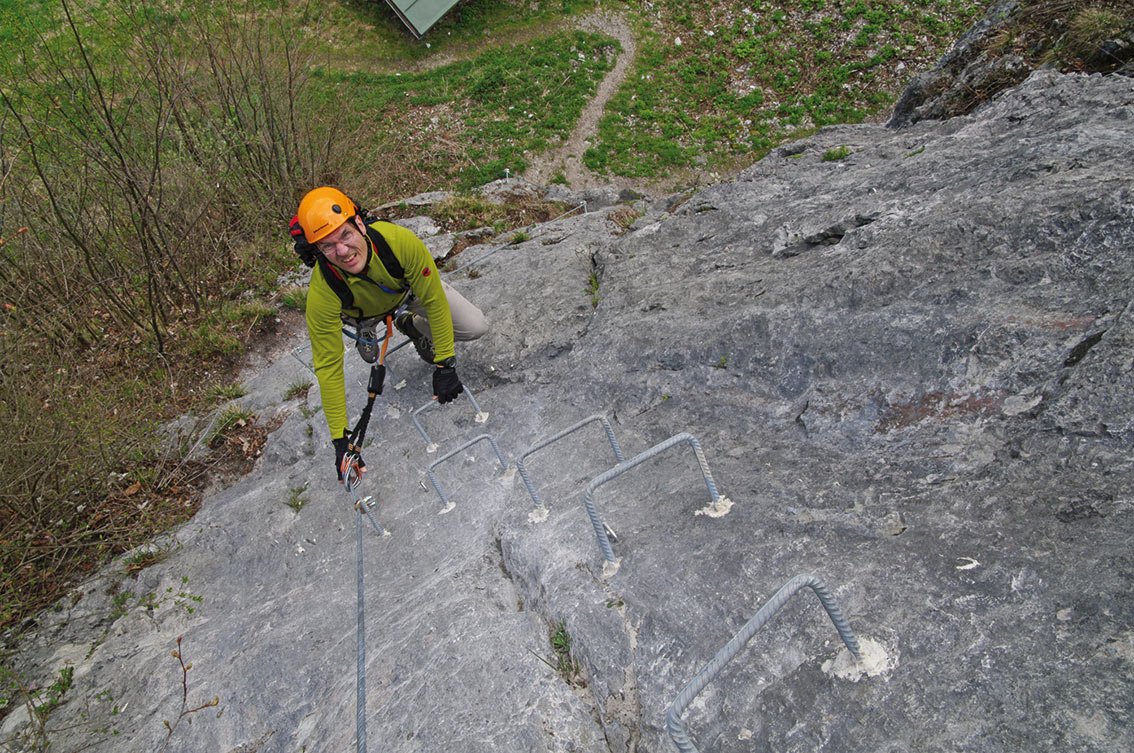 Da sich der Übungsklettersteig im Besitz der Klettersteigschule Berchtesgaden befi ndet, muss Gruppen der Klettersteigschule der Vorrang gelassen werden. Gewerbliches Führen ist untersagt! Nutzungsregeln sind zu beachten!