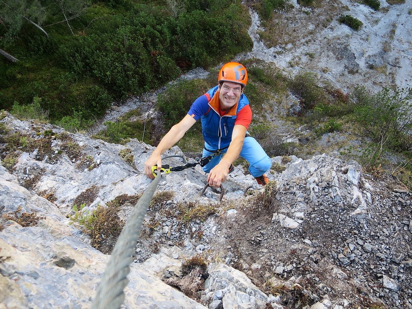 Der Fels ist nicht immer fest, das heißt auf Steinschlagt achten und die Steige NUR mit Helm begehen!