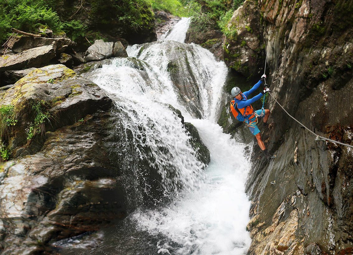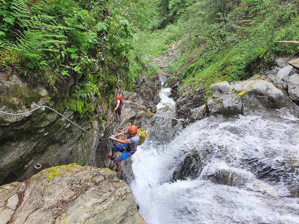 Diesen Klettersteig nicht bei Hochwasser und Gewittergefahr klettern!