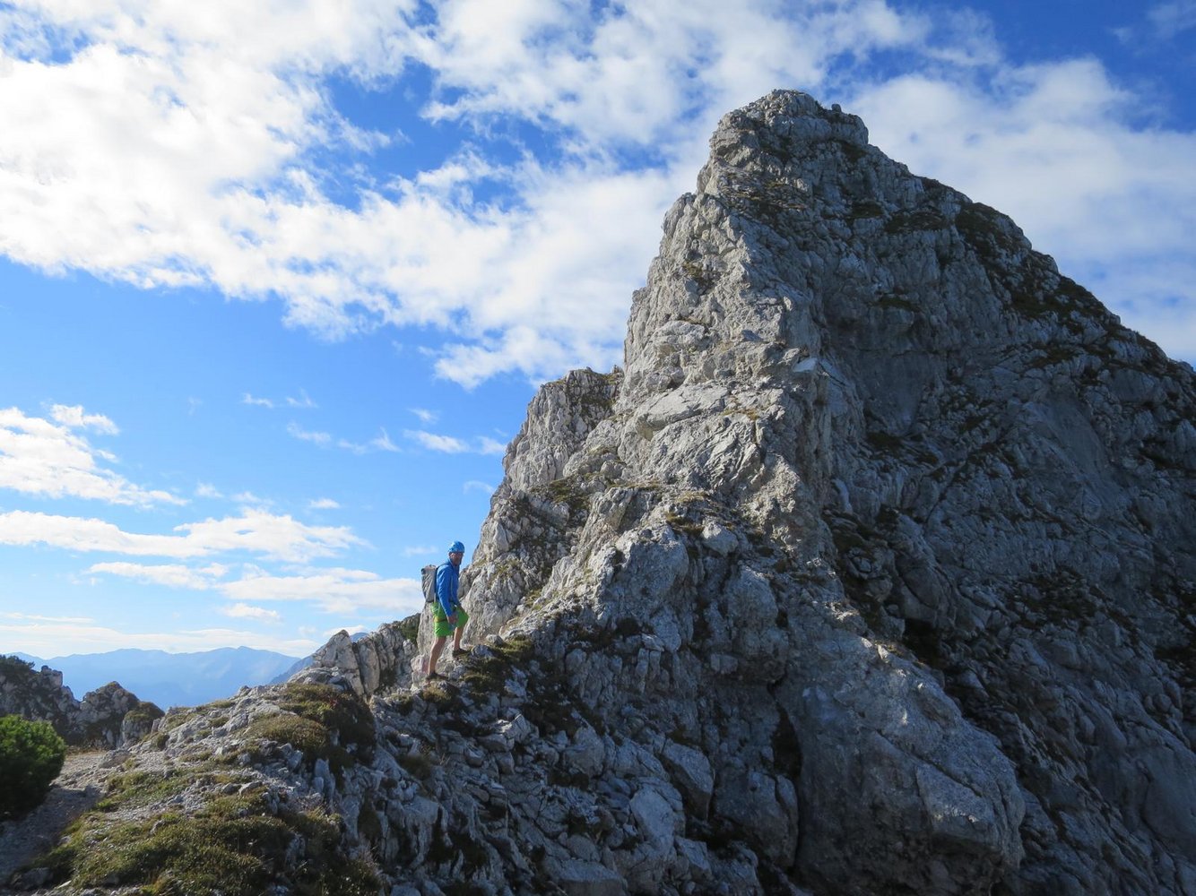 Lässt sich gut mit einer Besteigung des Hexenturmes verbinden (A/B; 130 Hm zusätzlich), in diesem Fall folgt man dem Grat weiter nach zum Gipfel des Hexenturms.