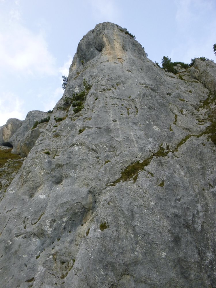 In der mitte führt der Steig durch einen flache Steinschlagrinne. Hier ist auf Steinschlag zu achten!
