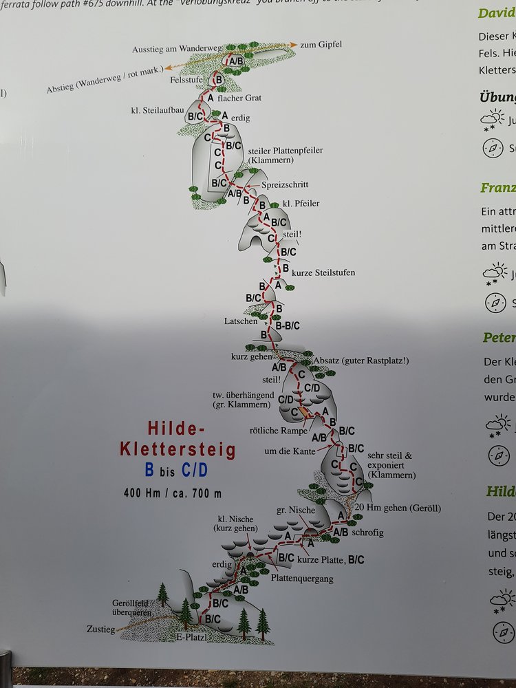 Das Topo findet ihr auch im Touren-App des neuen Klettersteigführer Österreich. Dort habt ihr über GPS auch bei allen Zustiegen eure aktuelle Position im Vergleich zum Track.