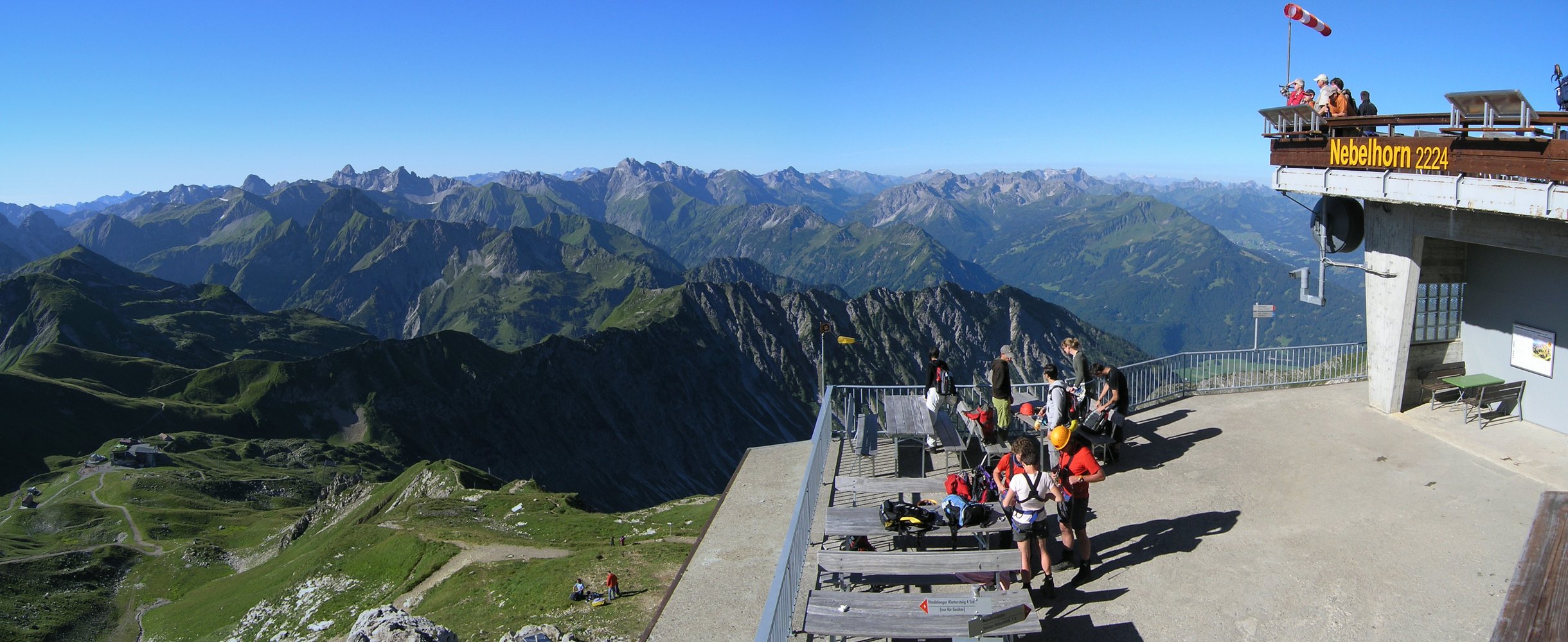Von der Bergstation der Nebelhornbahn (am besten dort anseilen) folgt man dem Grat in östlicher Richtung bis man über die ersten Türme klettern muss .