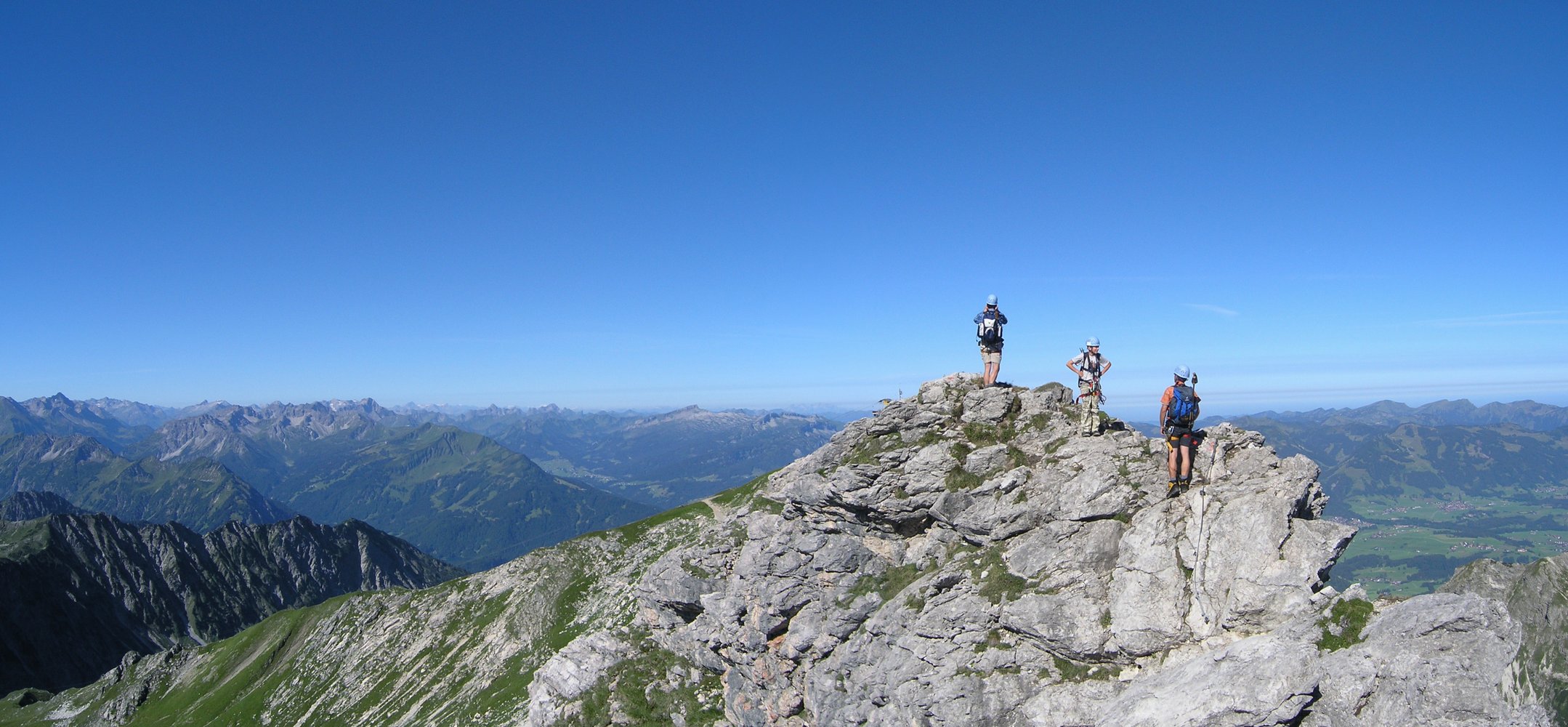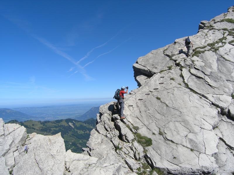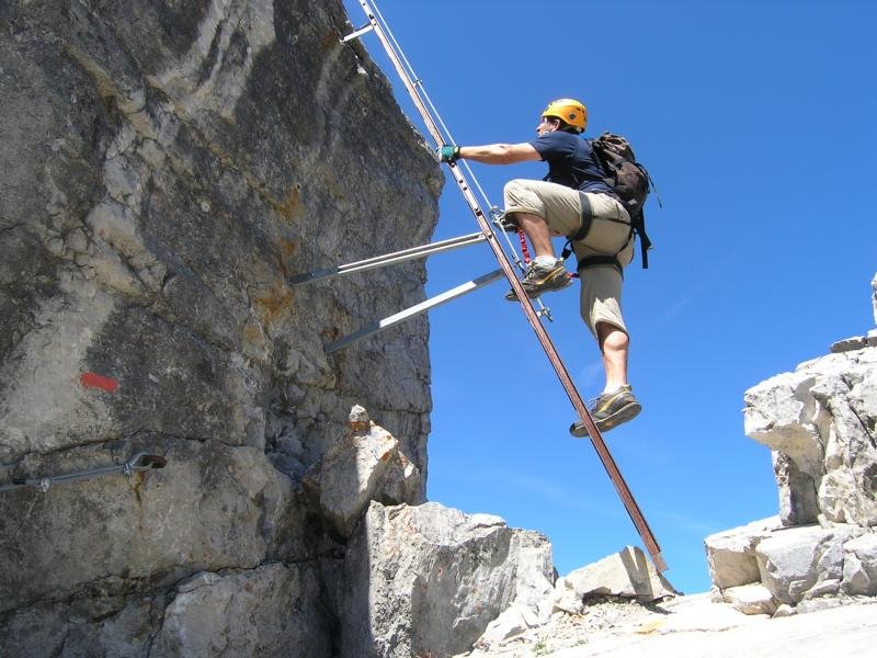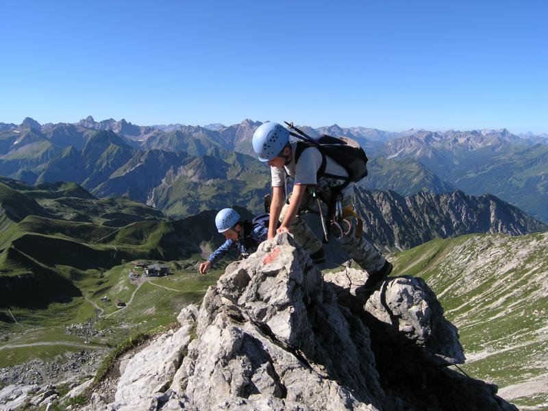 Ferrata-Fantastico, mehr fällt einem spontan meist gar nicht ein, wenn man auf dem Großen Daumen sitzt und auf den fast 4 km langen Hindelanger-Klettersteig zurückblickt. Ein Grat voller Gegensätze - steile und lange Leitern wechseln sich mit luftigen, fast nicht enden wollenden Felsgratpassagen ab. Der Blick reicht von der Zugspitze bis zum Bodensee - was will man mehr! Beim Hindelanger-Klettersteig gibt es auch eine kleine Schnupperrunde, die jedoch auch nur geübten Ferratisten zu empfehlen ist - für ungeübtere Klettersteiggeher auf jeden Fall ein Sicherungsseil mitnehmen, da auch die Schnupperrunde teilweise sehr ausgesetzt und daher nicht ganz ungefährlich ist.