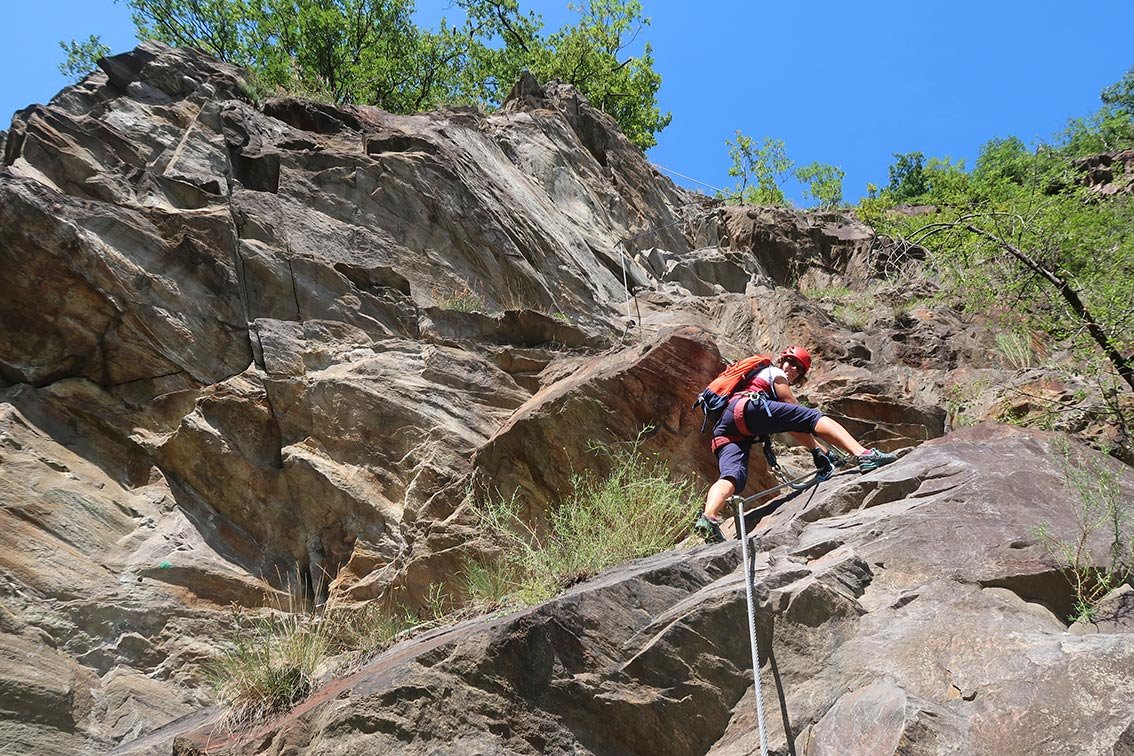 Sehr langer Klettersteig, der nicht unterschätzt werden sollte. Vor allem im zweiten Teil geht vielen Begehern oben, an den vielen steilen Vertikalpassagen die Kraft aus! Es gibt nach der alten Talstraße keinen Fluchtweg - wer also bis zur Straße nach der Seilbrücke schon Probleme hat, sollte genau überlegen, ob ein weiterer Anstieg noch sinnvoll ist.