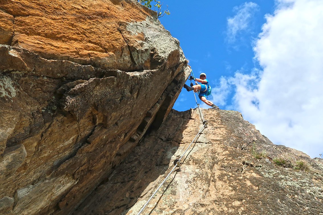 Bei Nässe ist der Klettersteig wegen der vielen erdigen Passagen (die bei Trockenheit aber nicht stören) nicht zu empfehlen!