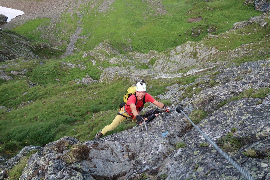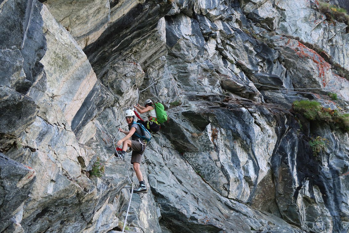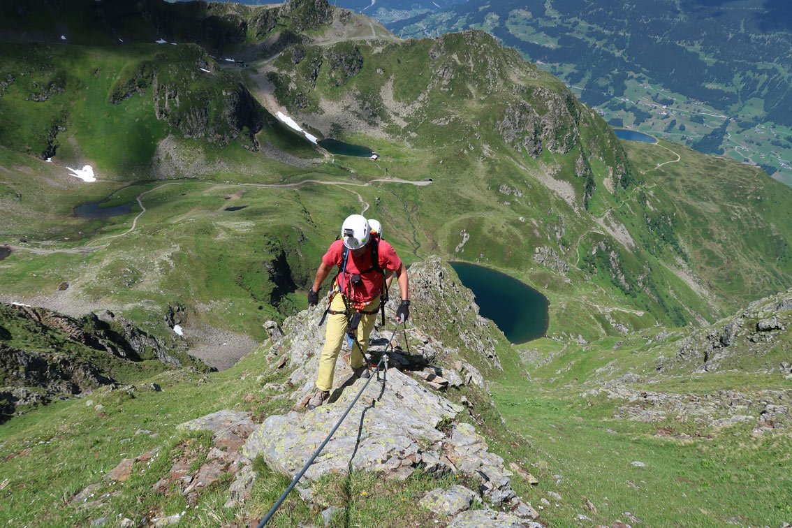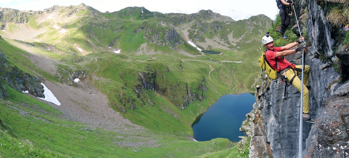 Achtung: Es gibt viel erdige Passagen, bei Nässe ist von diesem Klettersteig abzuraten! Auch der Notabstieg (bei Lawinensprengmasten) ist steil und bei Nässe heikel. Gesamt eine lange Klettersteigrunde (ca. 1700 Meter Stahlseil!), bei der man die Wetterentwicklung genau im Auge behalten sollte! Infos Bergbahn: www.silvretta-montafon.at Beim Zustieg beim Kälbersee gibt es noch die Kälbersee Klettersteige (B bis C/D, 60 Hm, ½ Std.), siehe Topo und App. Diese sind als Übungsklettersteige bzw. bei unsicherem Wetter interessant. Infos Bergbahn: www.silvretta-montafon.at