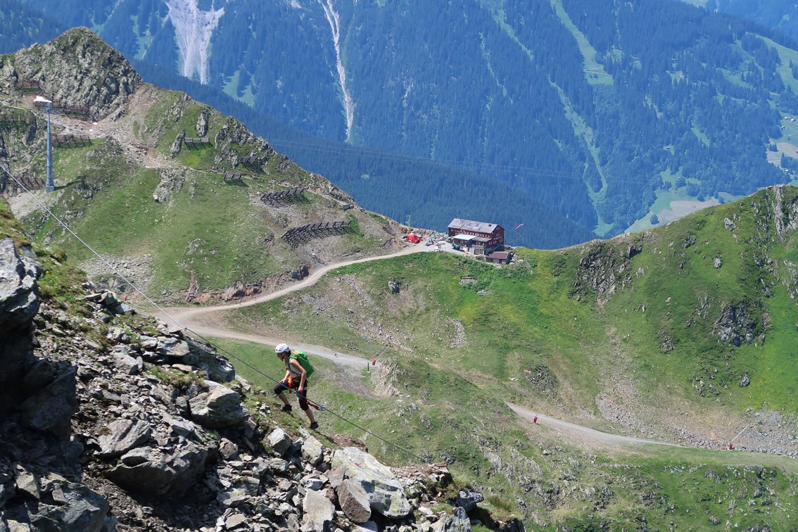 Der Klettersteig endet bei der Bergstation der Hochalpila Bahn (nur Winterbetrieb). Von dort folgt man der Skipiste (Markierung) und dann dem ausgeschilderten Wanderweg bis zur Wormser Hütte. Von dieser auf dem Wanderweg zurück zur Bergstation Sennigrat und mit dem Sessellift und der Hochjochbahn hinunter ins Tal.