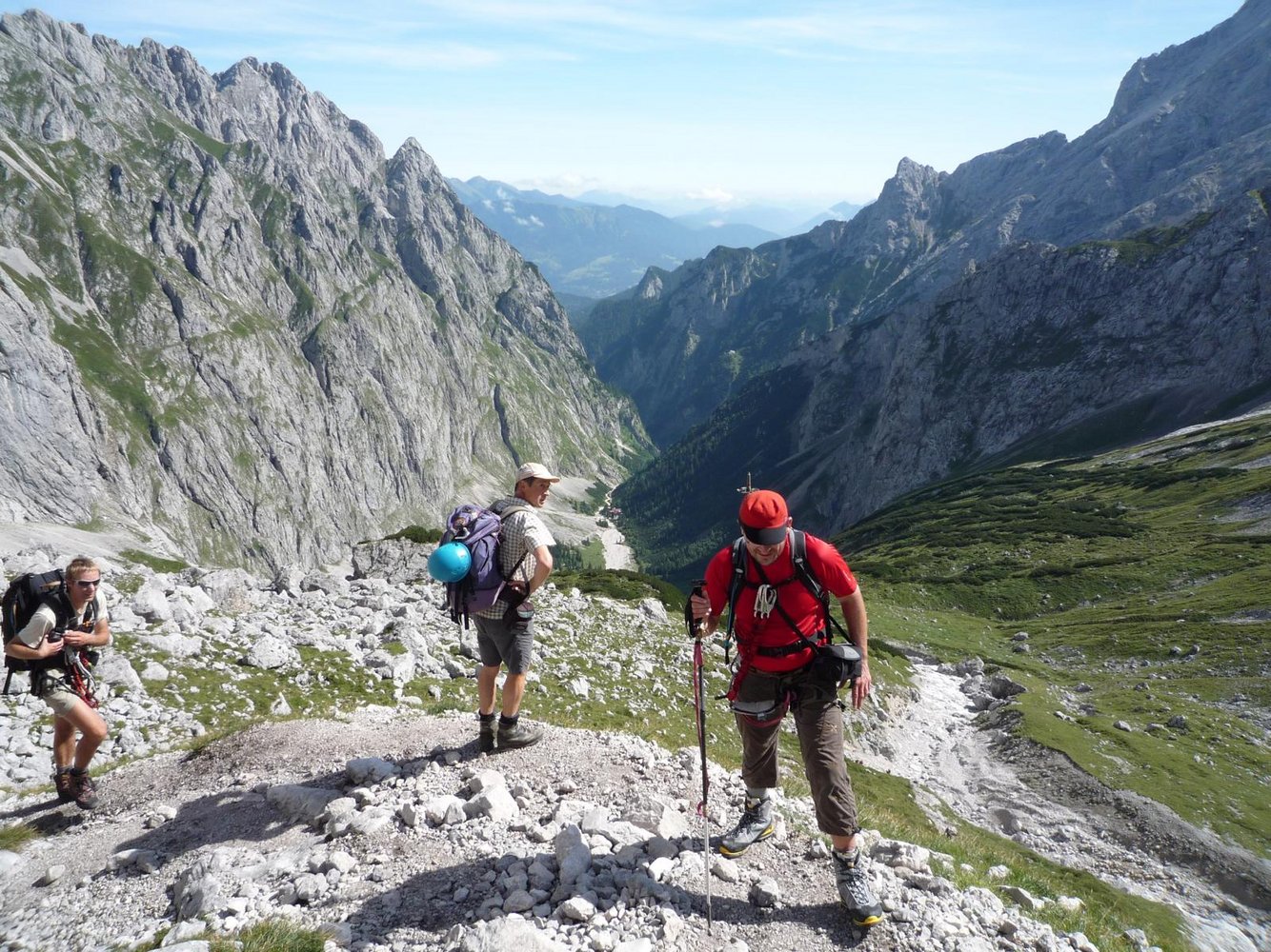 In der Regel fährt man mit der Zugspitzbahn hinunter zum Eibsee und mit der Bahn zurück nach Hammersbach. Hartgesottene und konditionsstarke Geher steigen über den Stopselzieher- Klettersteig zur Wr. Neustädterhütte, von dieser geht es dann zurück zum Eibsee – 2200 Hm Abstieg (siehe bei Tour Stopselzieher)!