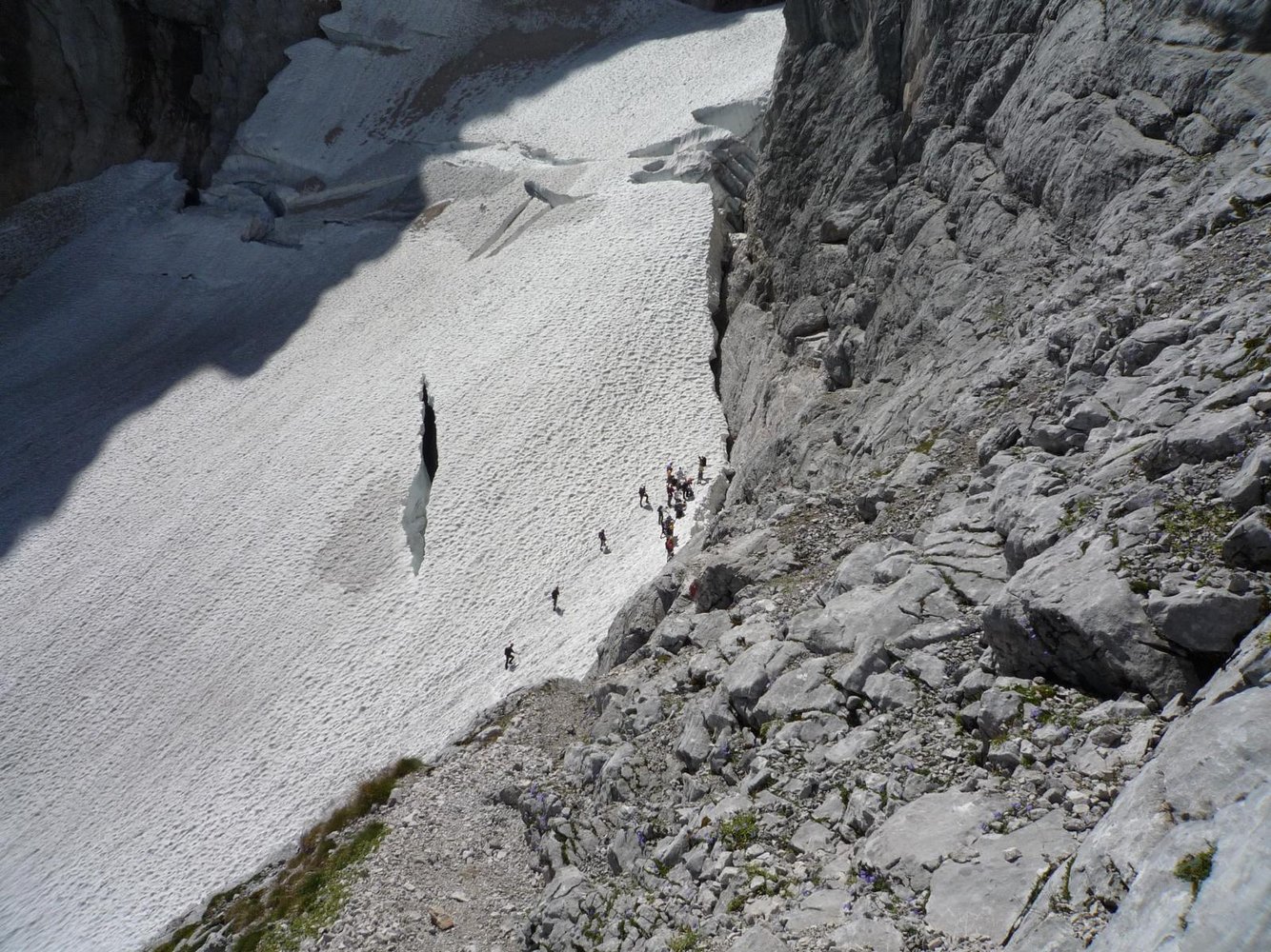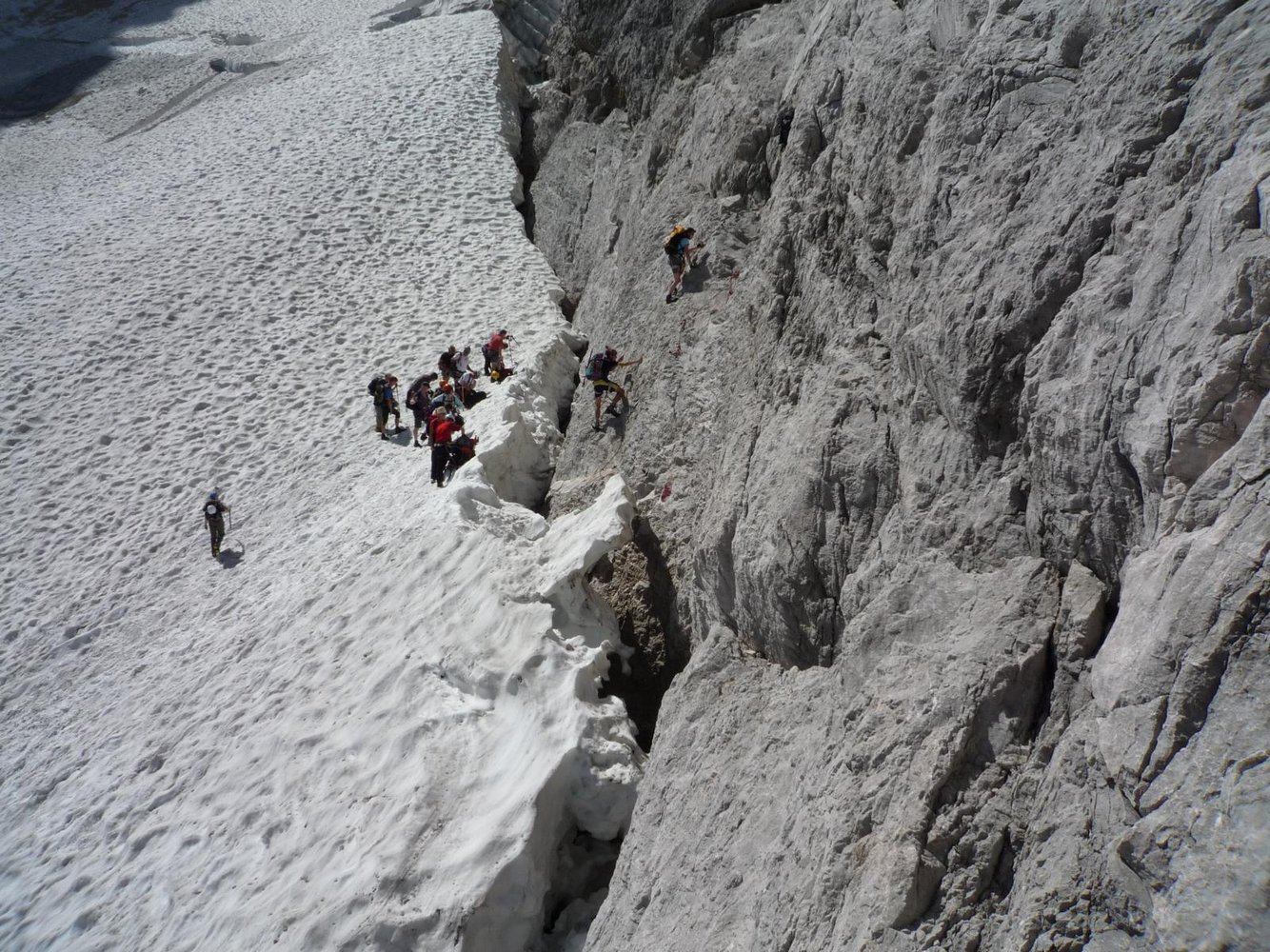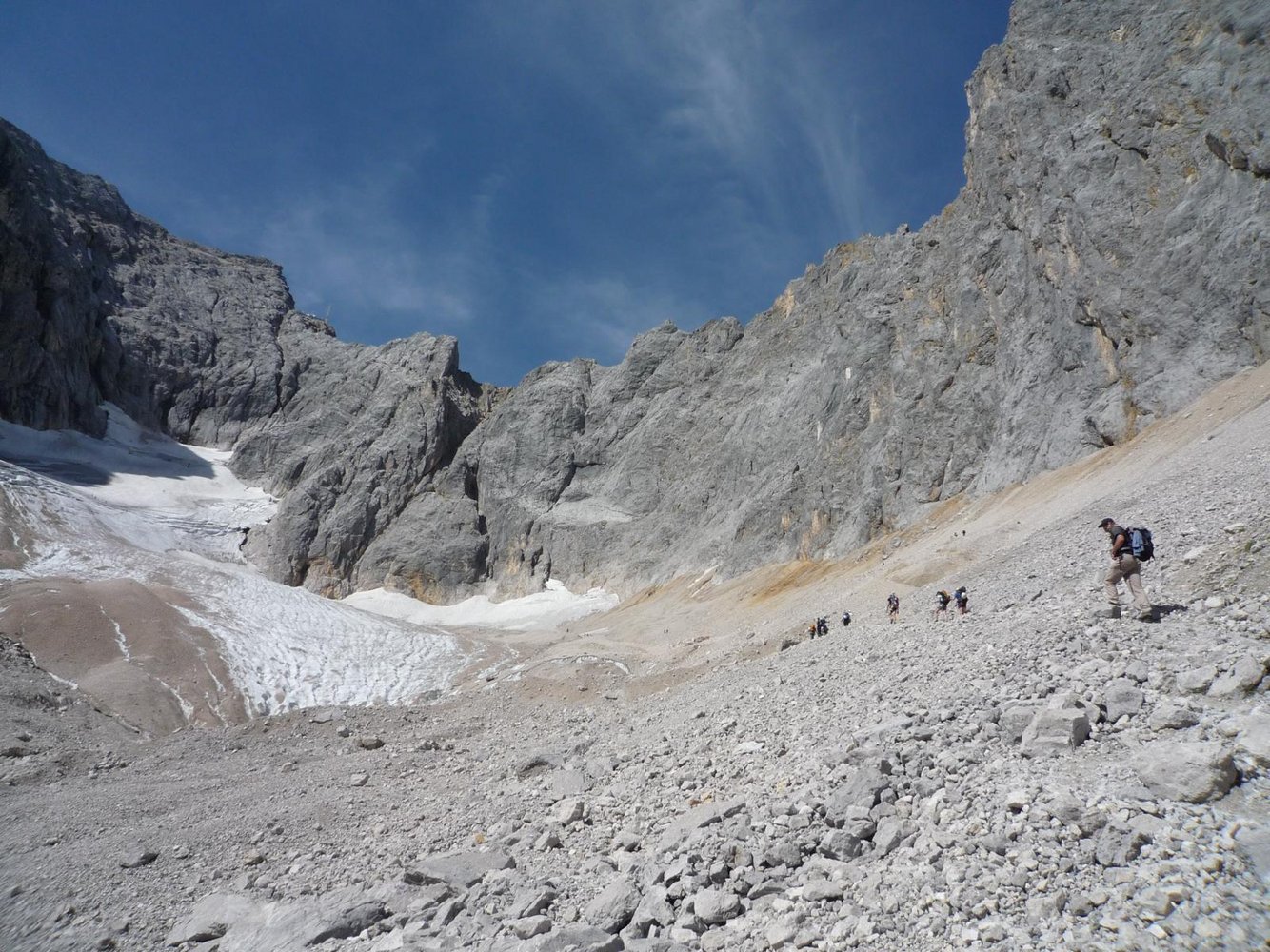 Diese Tour ist kein Sonntagsspaziergang. Der Höllentalferner ist das gefährliche Bindeglied zwischen Brett und Schlussanstieg – liegt viel Schnee auf dem Gletscher besteht Spaltensturzgefahr, ist der Gletscher nicht mit Schnee bedeckt, ist solides Gehen auf 30° steilem Blankeis gefragt (mit Steigeisen, Pickel und Seil muss man umgehen können).
