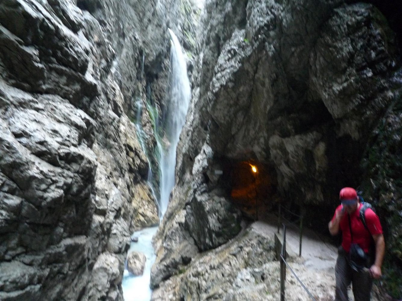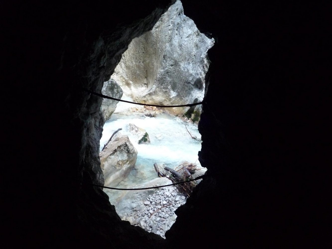 Von Hammersbach auf dem Wanderweg zur Höllentalklamm und die wirklich sehenswerte Tunnelstrecke hinauf zur Höllentalangerhütte (die „mautpflichtige“ Tunnelstrecke kann man auch rechts umgehen, ca. 25 Minuten Mehraufwand). Nach der Höllentalangerhütte folgt eine Bachquerung (Brücke) und der Aufstieg zum sogenannten Brett. Dort beginnt der eigentliche Klettersteig.