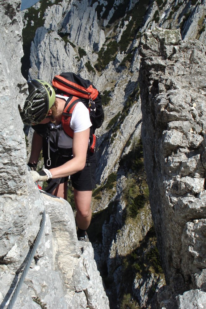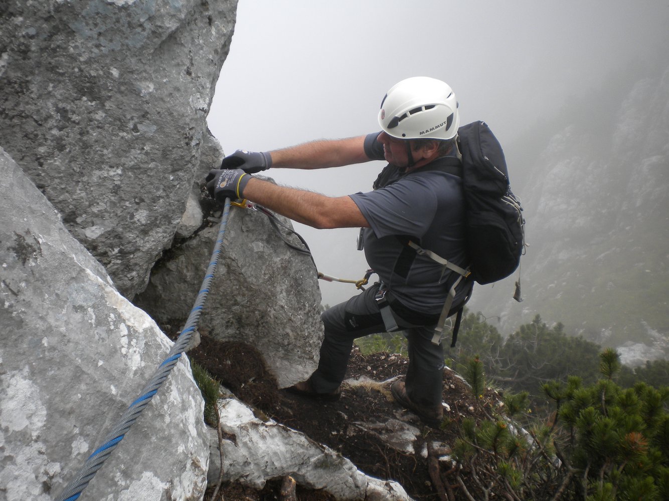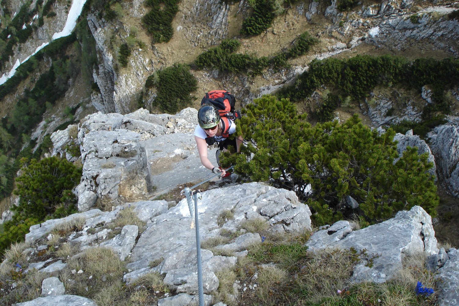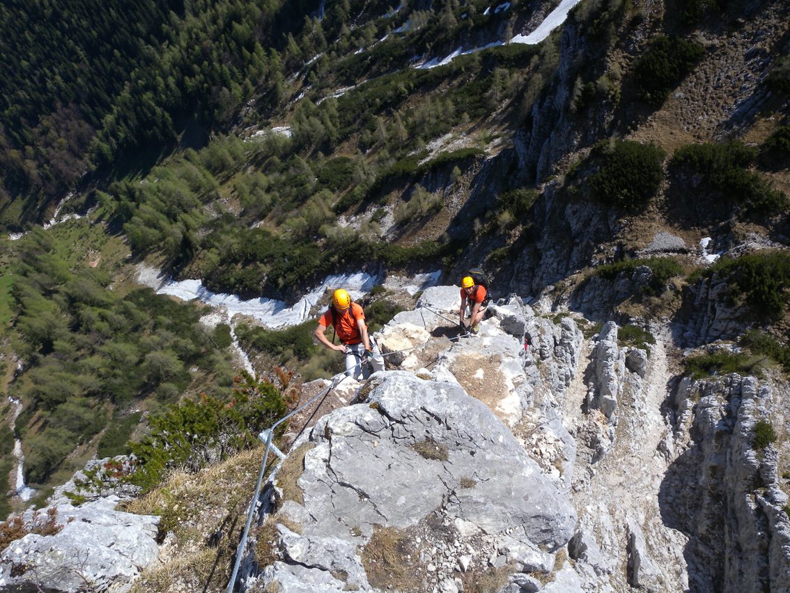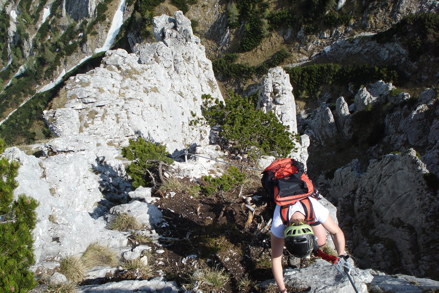 Bei Schneelage ist der Abstieg zum Einstieg des Klettersteiges gefährlich (steile Schneefelder, Absturzgefahr!).
