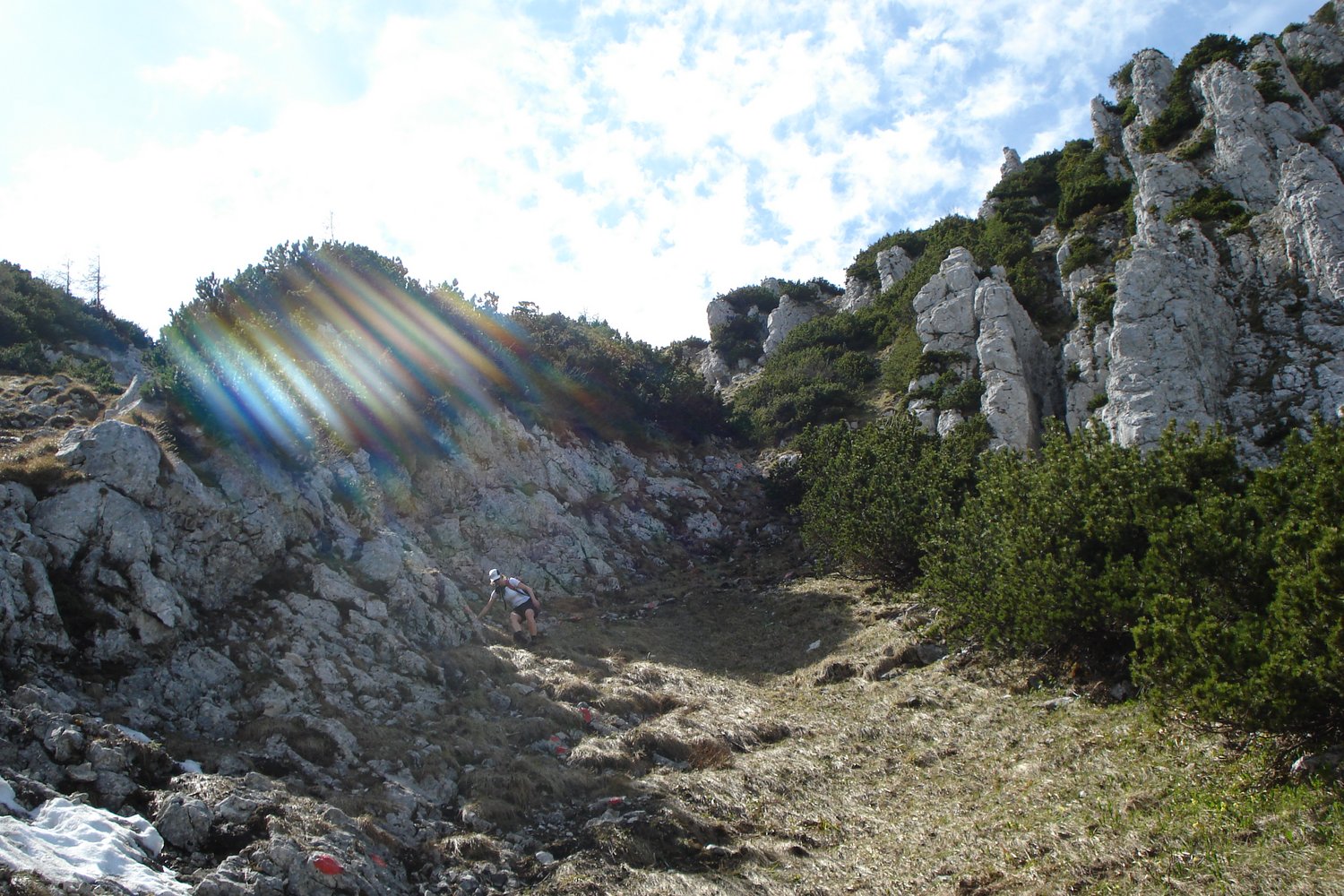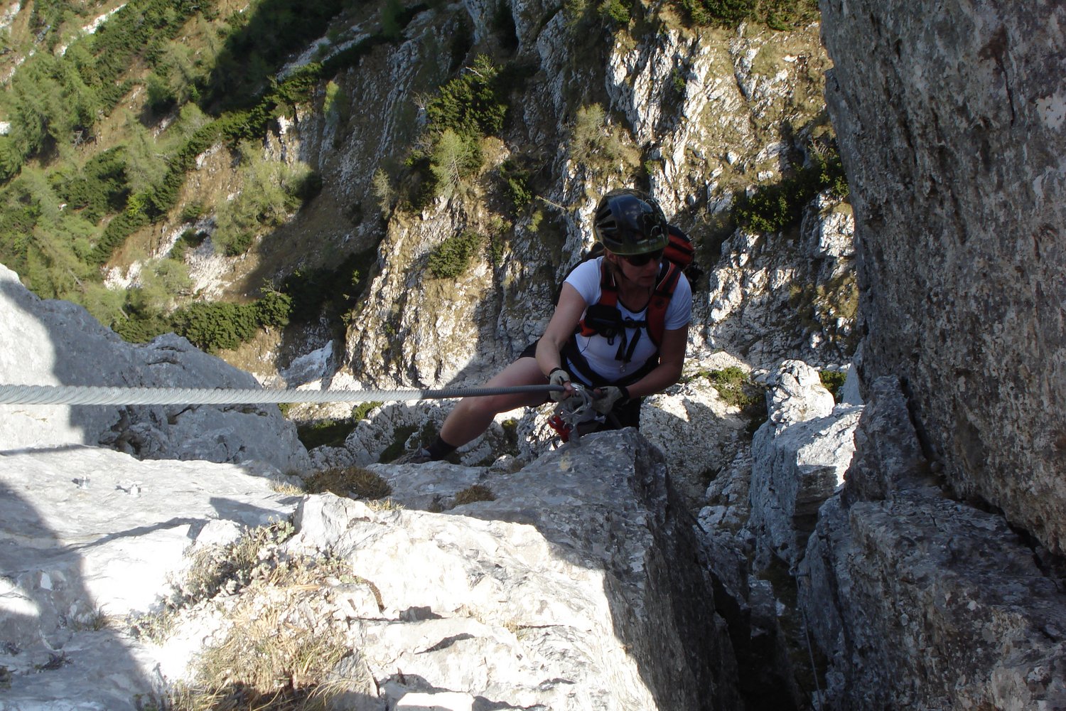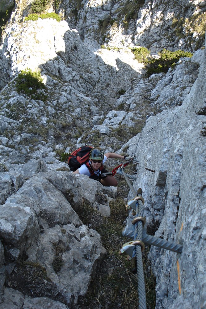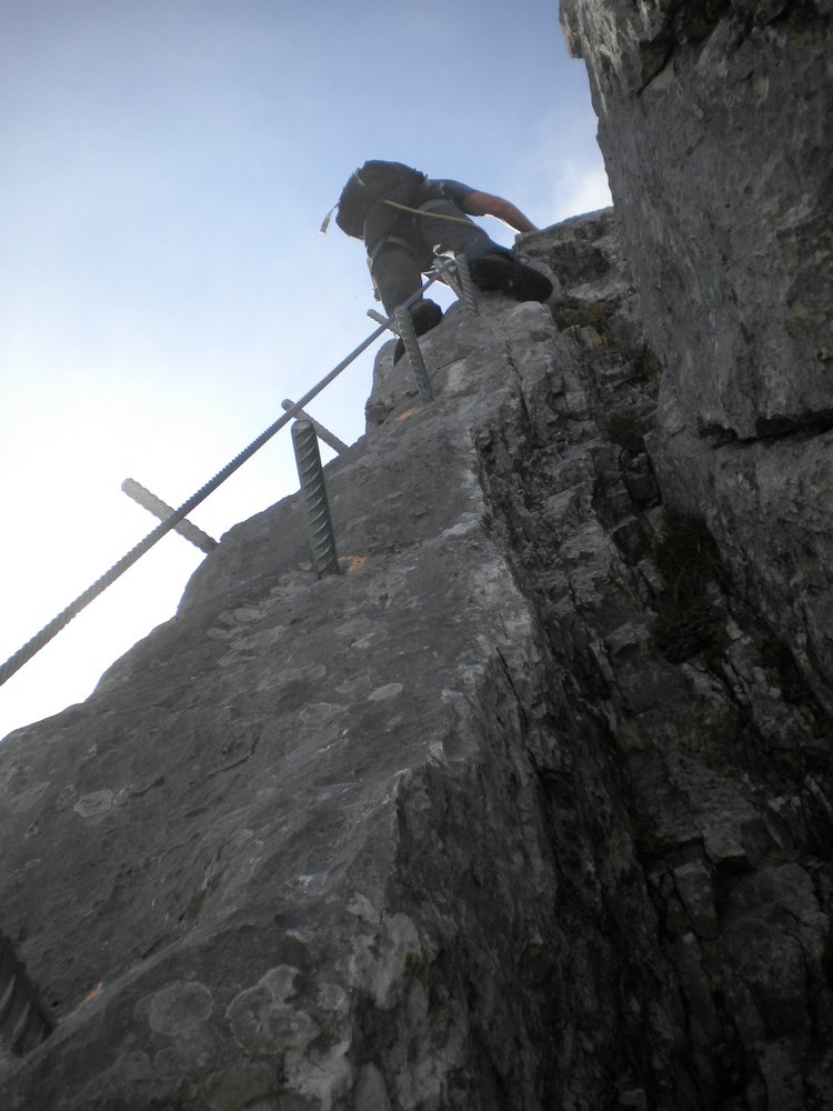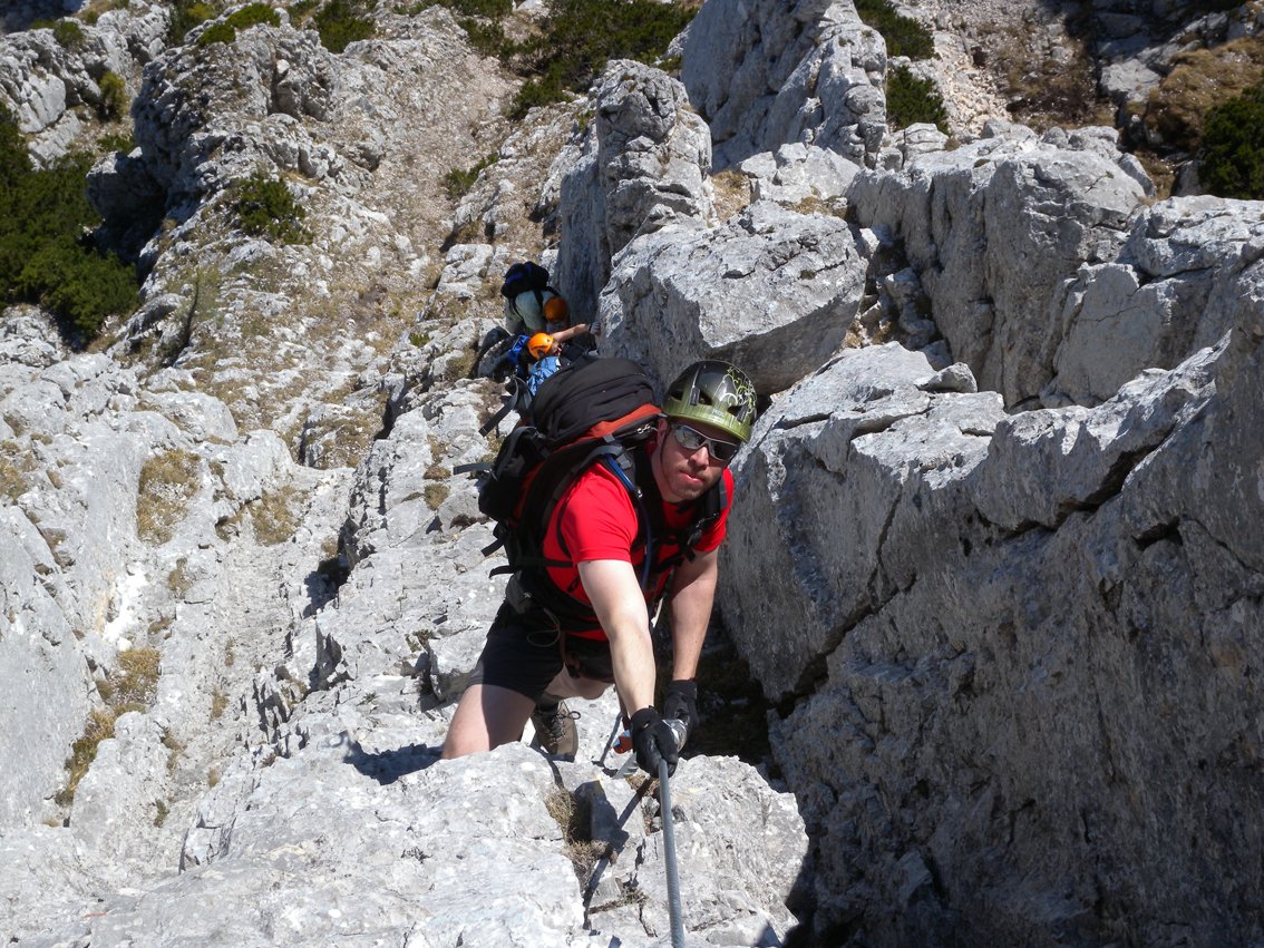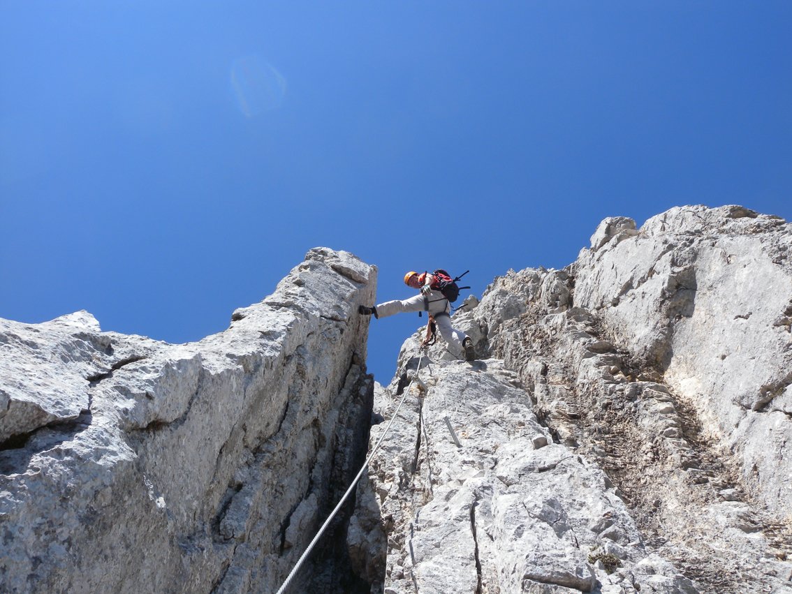 Bei Schneelage ist der Abstieg zum Einstieg des Klettersteiges gefährlich (steile Schneefelder, Absturzgefahr!).